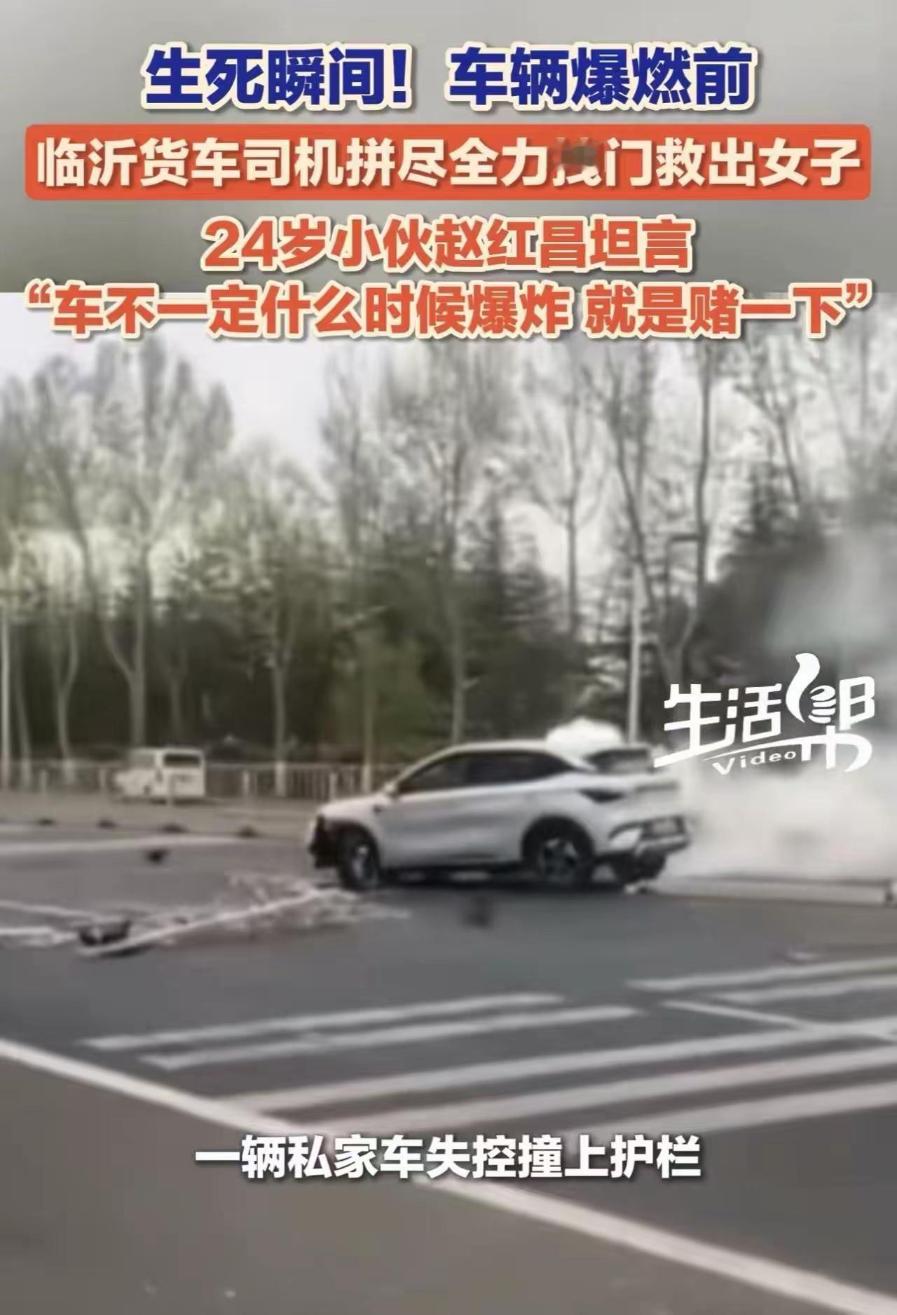 “跟死神抢人!”车辆爆燃前,临沂货车司机徒手拽门救出女车主,5分钟后车辆烧成空壳!网友:就问俺山东人中不中?