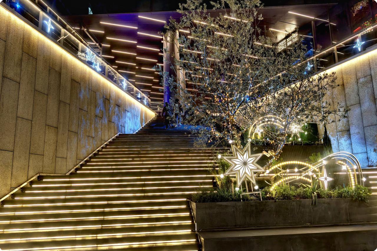 华灯初上,城市换了模样,万象城在夜色中熠熠生光。建筑轮廓被霓虹轻轻勾镶,像梦幻城堡闪耀在身旁。