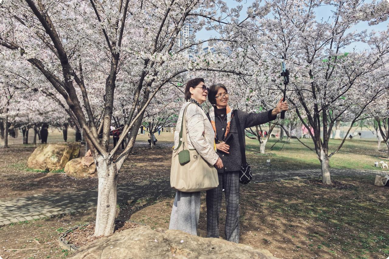 踏入公园,似走进童话,樱花如云在枝头轻飘。粉白的花瓣似雪花舞蹈,在春风中勾勒浪漫的线条。