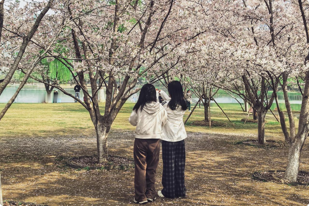 湖边的樱花倒映水中,与波光一起荡漾着梦。游人穿梭在花影之中,脸上洋溢着惊喜的笑容。