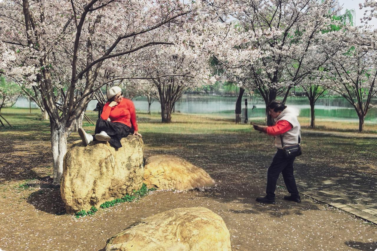 在城市喧嚣的一角,西北湖公园似宁静的岛。樱花是它此刻的主角,吸引着人们来此打卡报到。