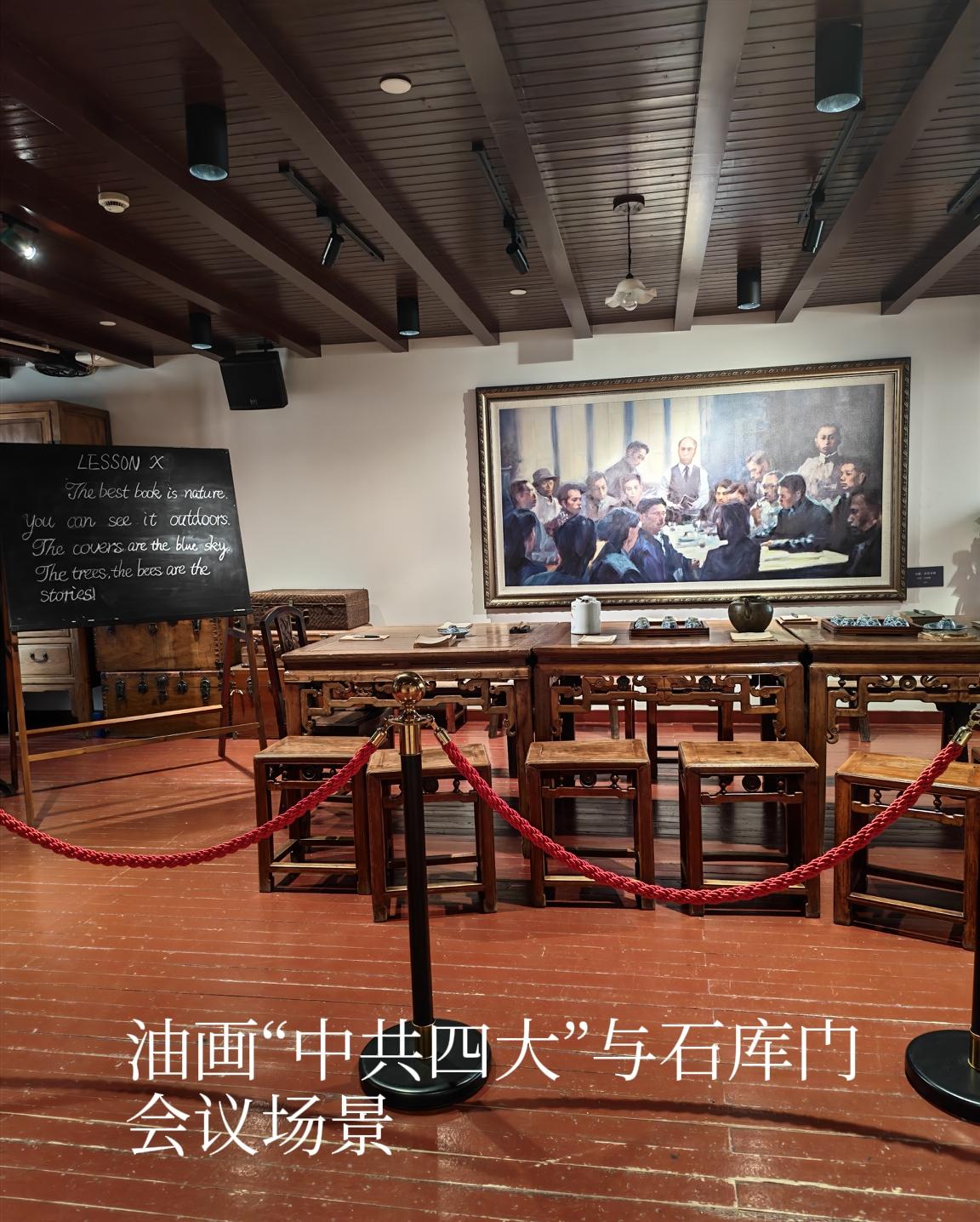 展厅内,时局背景、会议进程、历史贡献层层铺展,还原了石库门会议室的场景,展现出先辈共商大计的热血时刻。