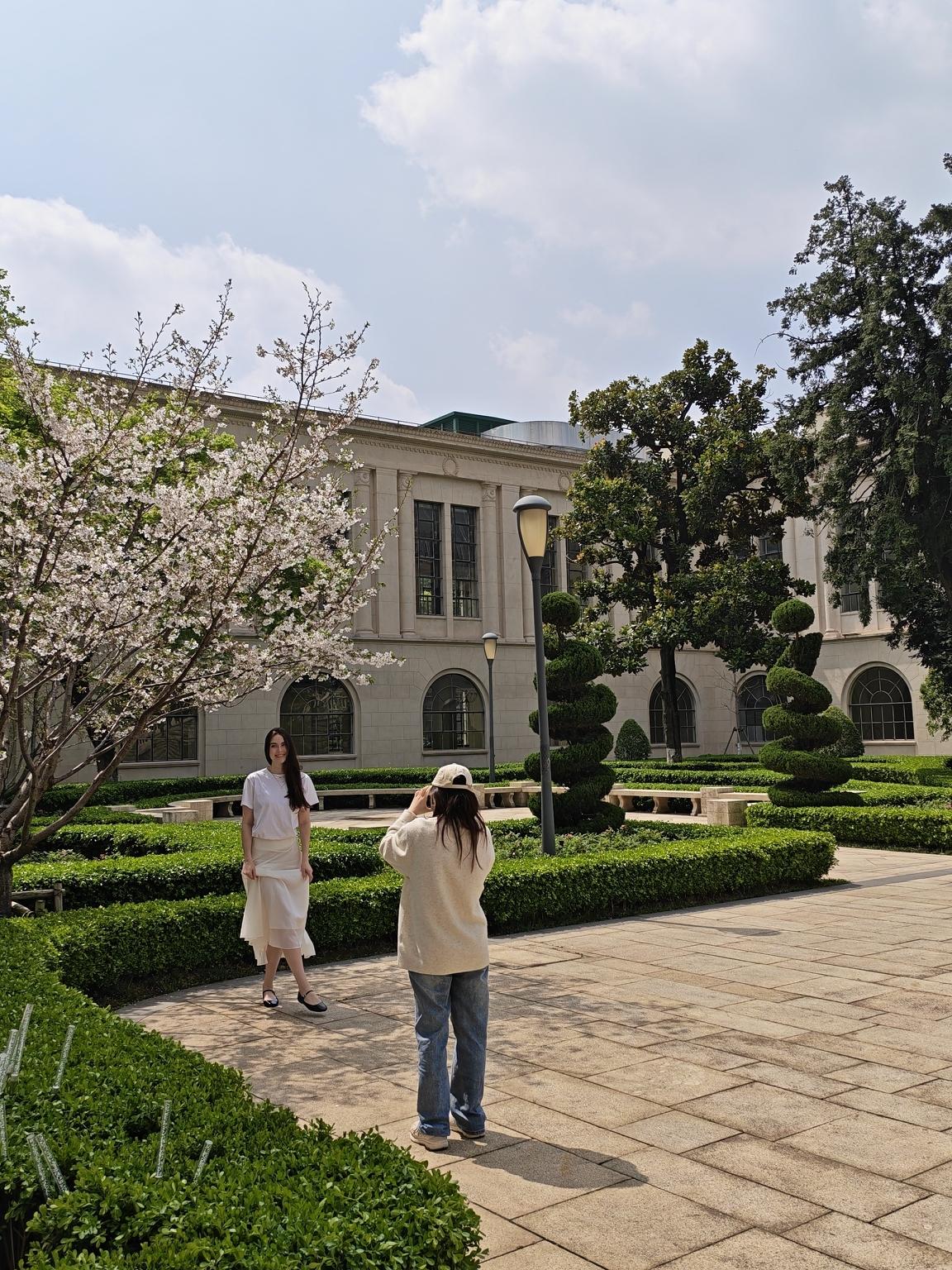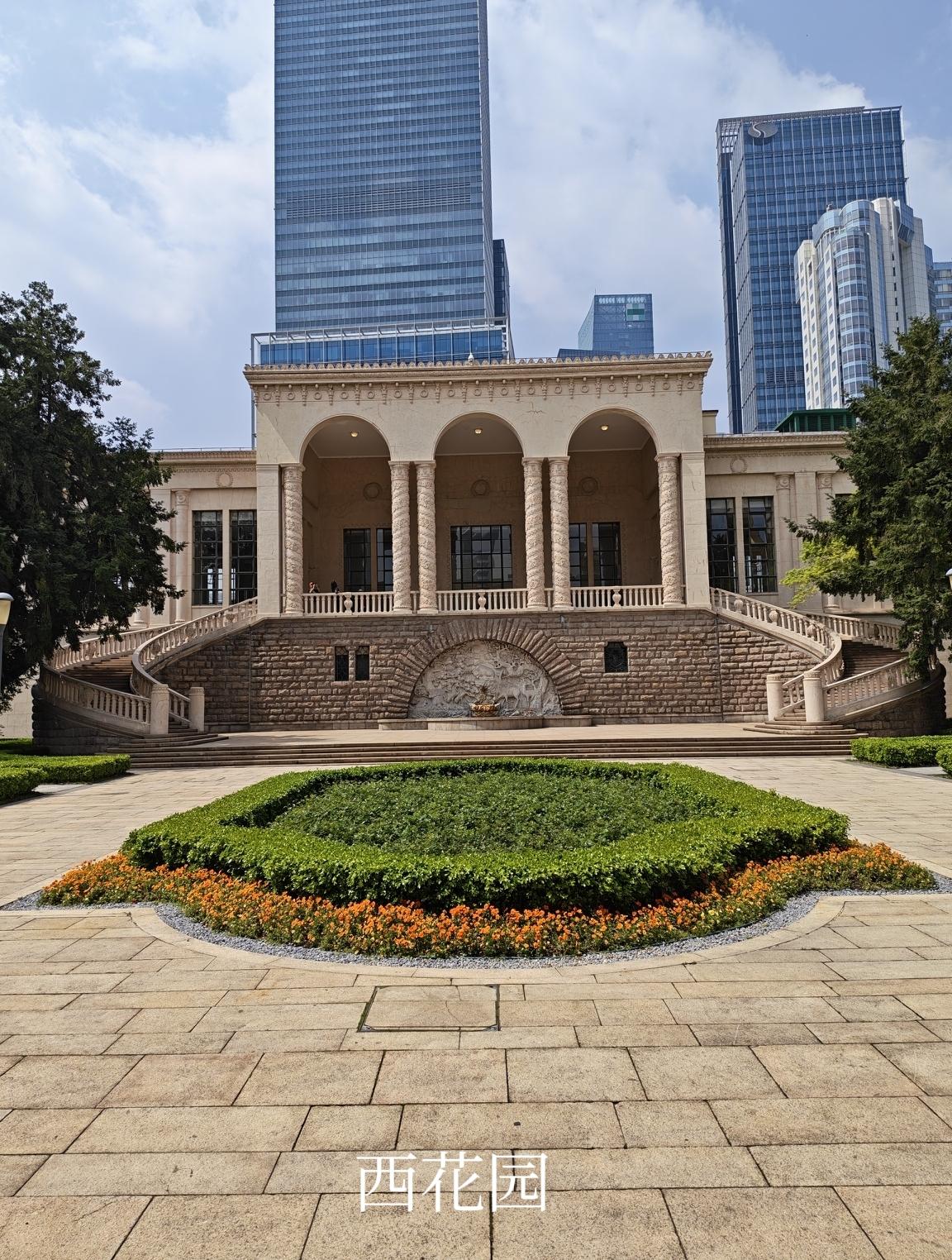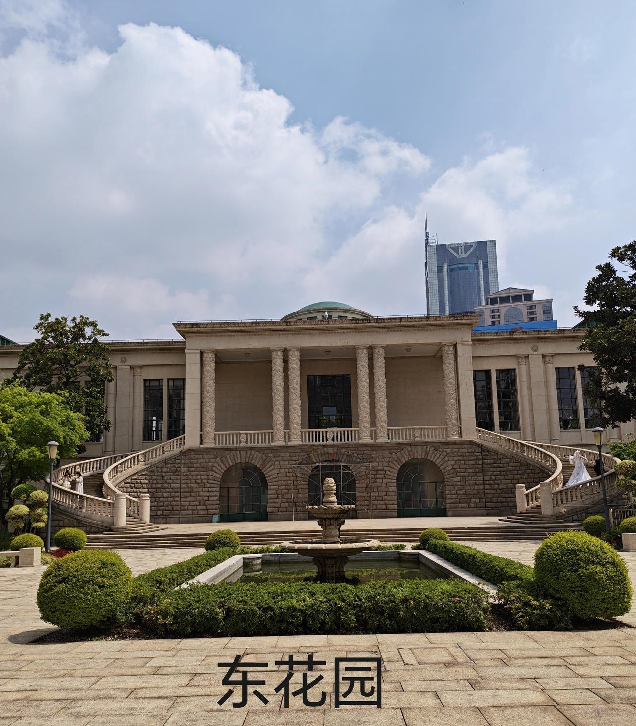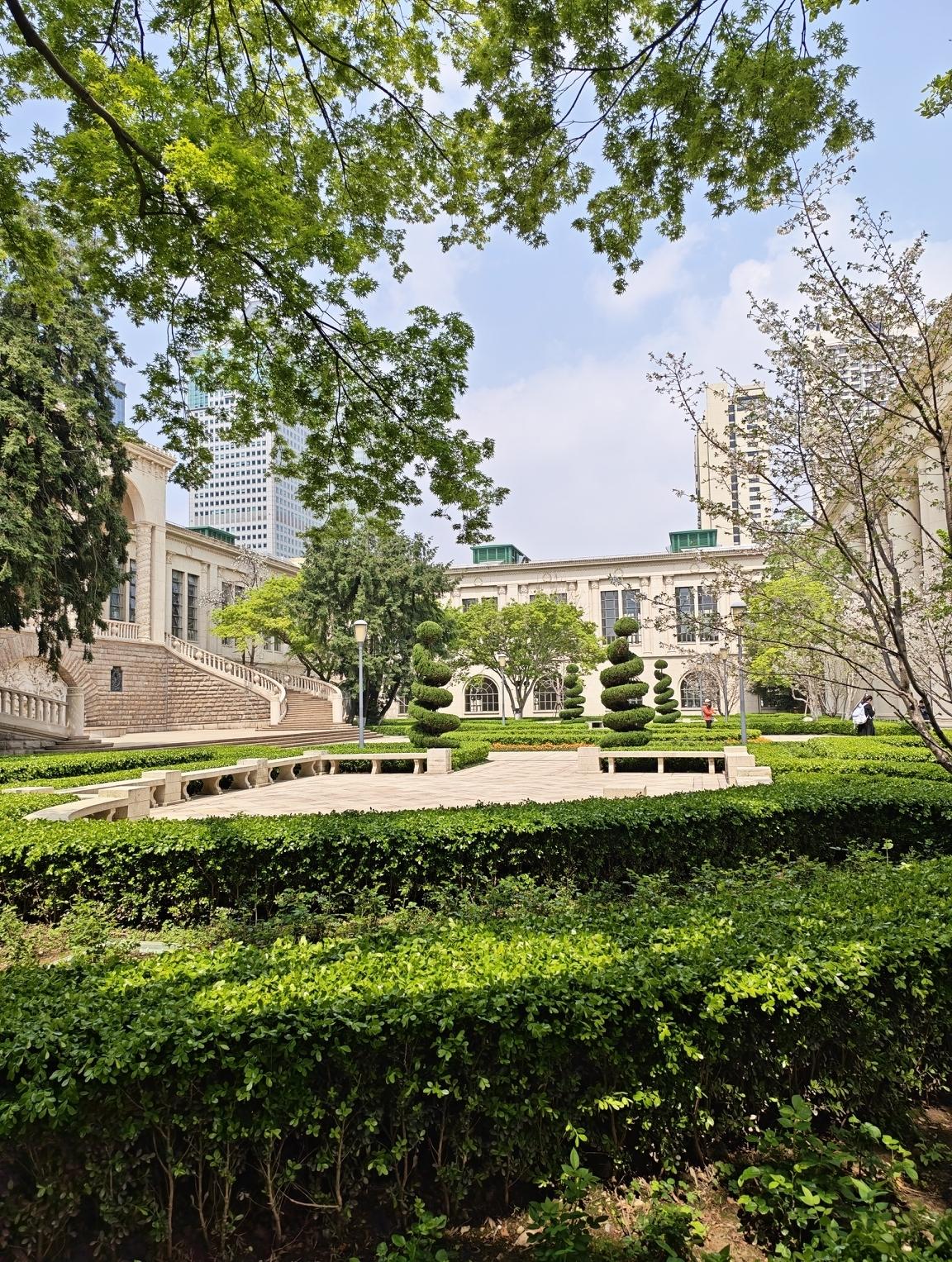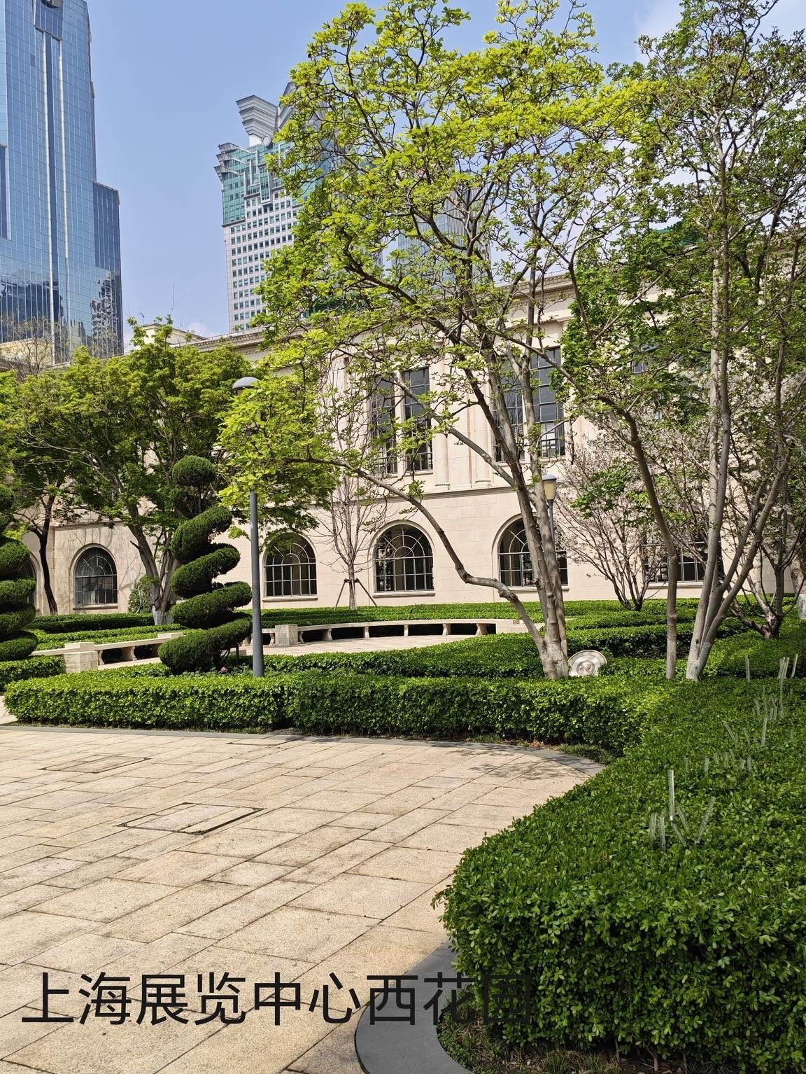 展览中心是1955年在犹太富商哈同的 爱俪园旧址上建成,是俄罗斯古典主义 风格。110.4米鎏金尖顶 + 红五星,曾是上海制高点。现在长期作为上海 两会、外事、高端展会 主场地。也常年在此举办上海书展、奢侈品展、艺术博览会等。可惜我这次去,什么展览也没有,但对称的东西花园与长廊很美,花园里的景色不一般,俄罗斯风格的建筑也很诱人,因而在这里拍照的人很多,还有情侣在拍婚纱照。