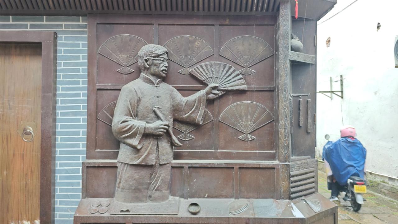 老街不长,也就几百米,青石板路被岁月磨得温润,踩上去哒哒作响。两侧是白墙黛瓦的明清老宅,木雕窗棂、斑驳砖墙,处处都是岁月的痕迹。这里最金贵的,是书画宗师吴昌硕的故居就坐落于此 。少年时的昌硕先生,便是在这街巷间苦读诗书画印,足不出户如闺秀般潜心研习,终成一代宗师。老街上的一砖一瓦,似乎都还留着他提笔挥毫、运刀篆刻的影子,墙面上的印章石刻,家家户户的木刻对联,连窨井盖都刻着诗句,细节里全是藏不住的文人雅致。