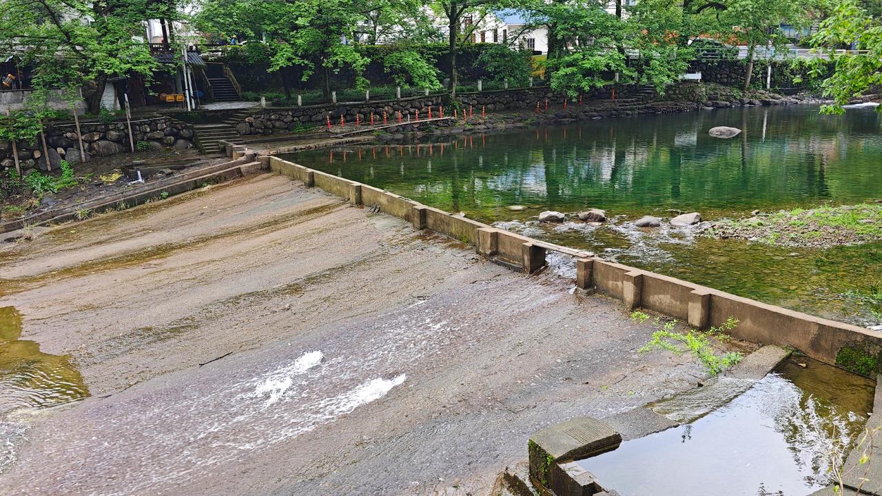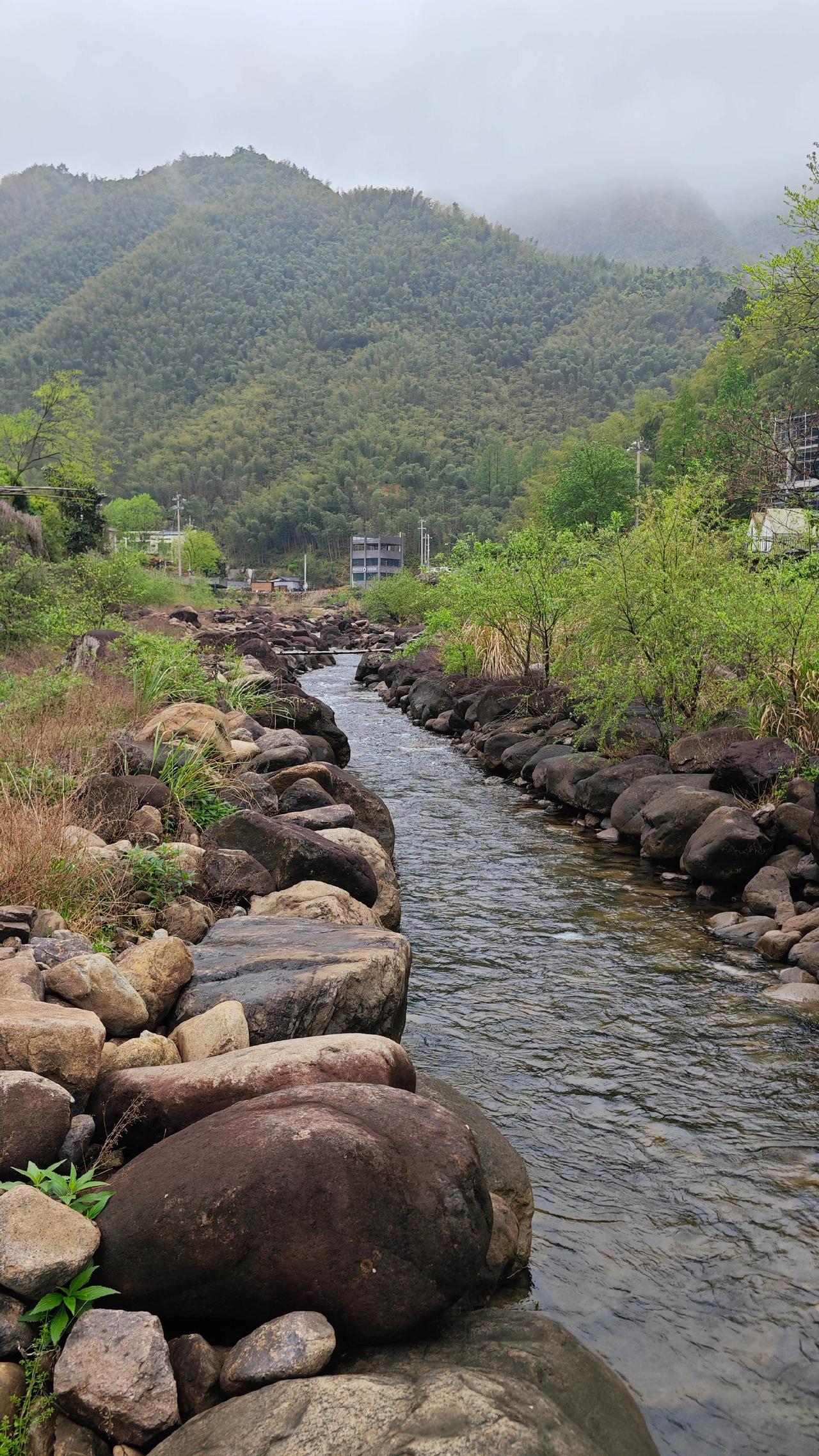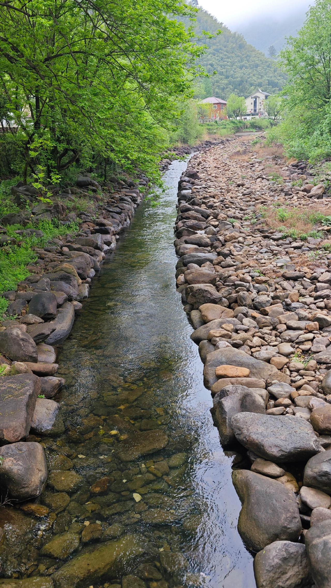 沿溪的游步道平缓舒展,全程5公里,一侧是竹海,一侧是清溪。溪水发源于浙北大峡谷,一路蜿蜒汇入老石坎水库 ,水色清透,能看见溪底的鹅卵石与游鱼。旧时景溪是报福往章村的必经之路,溪水边曾有商船、行人往来,如今虽不见繁华旧貌,却留存着水孕万物的温柔 。村训里那句“水泽众生,唯公不贪吝”,刻在村口的石碑上,也刻在村民的骨子里 。