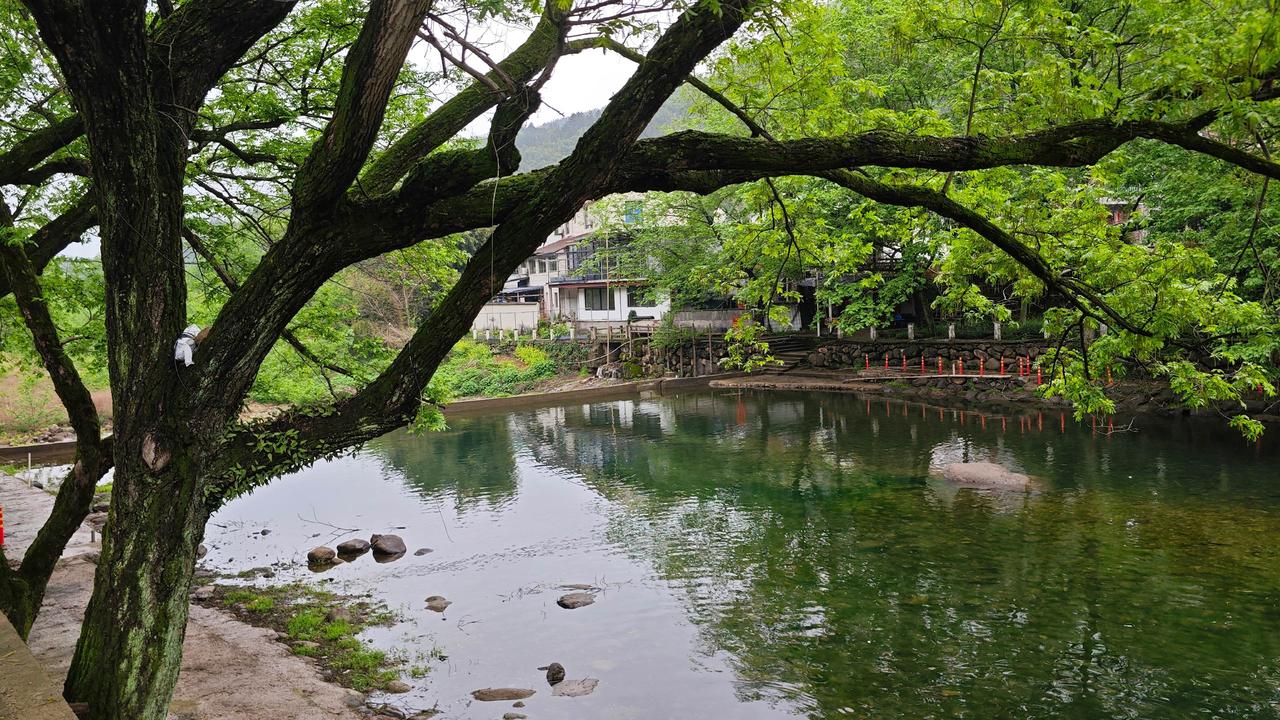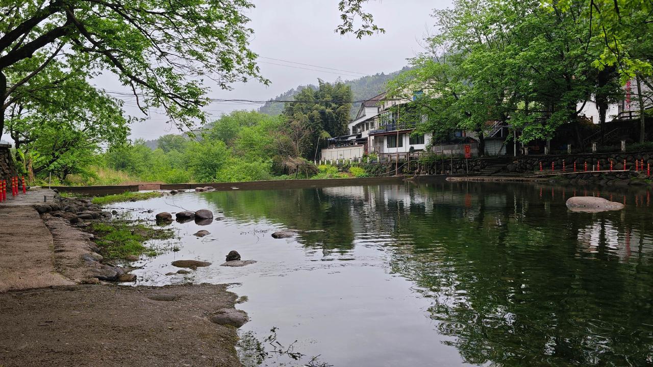 村落里的老房子依山而建,白墙黛瓦,有些还保留着早年的土木结构,木窗棂上的雕花虽斑驳,却能窥见当年的匠心。后来不少农房改造成民宿,却没丢了原生的韵味,素色外墙搭配木质元素,和山水自然相融。傍晚时分,村民在溪边洗菜、闲聊,孩童追着跑跳,炊烟从屋顶缓缓升起,混着山野草木的清香,那画面,比任何风景照都动人。