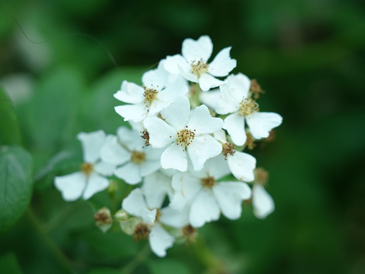在泸州,野蔷薇真的太常见了,老小区的围墙根、沱江旁的步道护栏、乡下的田埂篱笆、甚至公路旁的护坡上,只要有一点点泥土,有一缕阳光,它就能扎下根,拼命生长。它和人工蔷薇是同期开花的,四月中下旬到五月底,也就一个多月的花期,可它一点都不敷衍,开得密密麻麻,一串压着一串,把枝条都坠得弯弯的,风一吹,就跟着晃,看着特别有生气。有时候,它的藤条顺着人工蔷薇的架子往上爬,小白花和五颜六色的蔷薇花缠在一起,你中有我、我中有你,那些艳丽的花儿看着虽好看,可野蔷薇的小白花,凭着一股子干净劲儿,反倒更让人记挂。没人管它,没人疼它,可它就是能凭着自己的野劲儿,在各种不起眼的角落里,开成一片,让路过的人,都忍不住停下脚步,多看两眼。