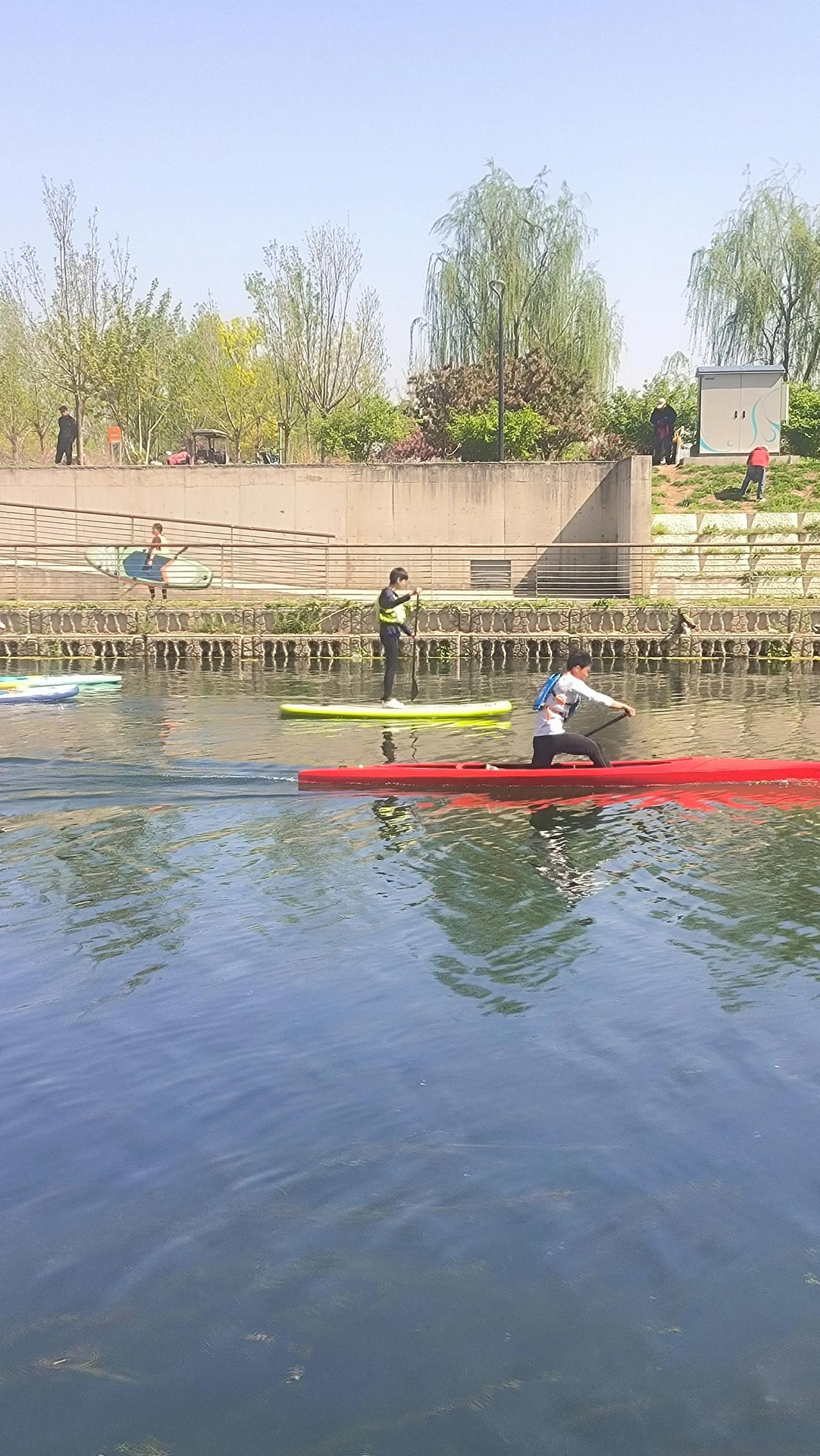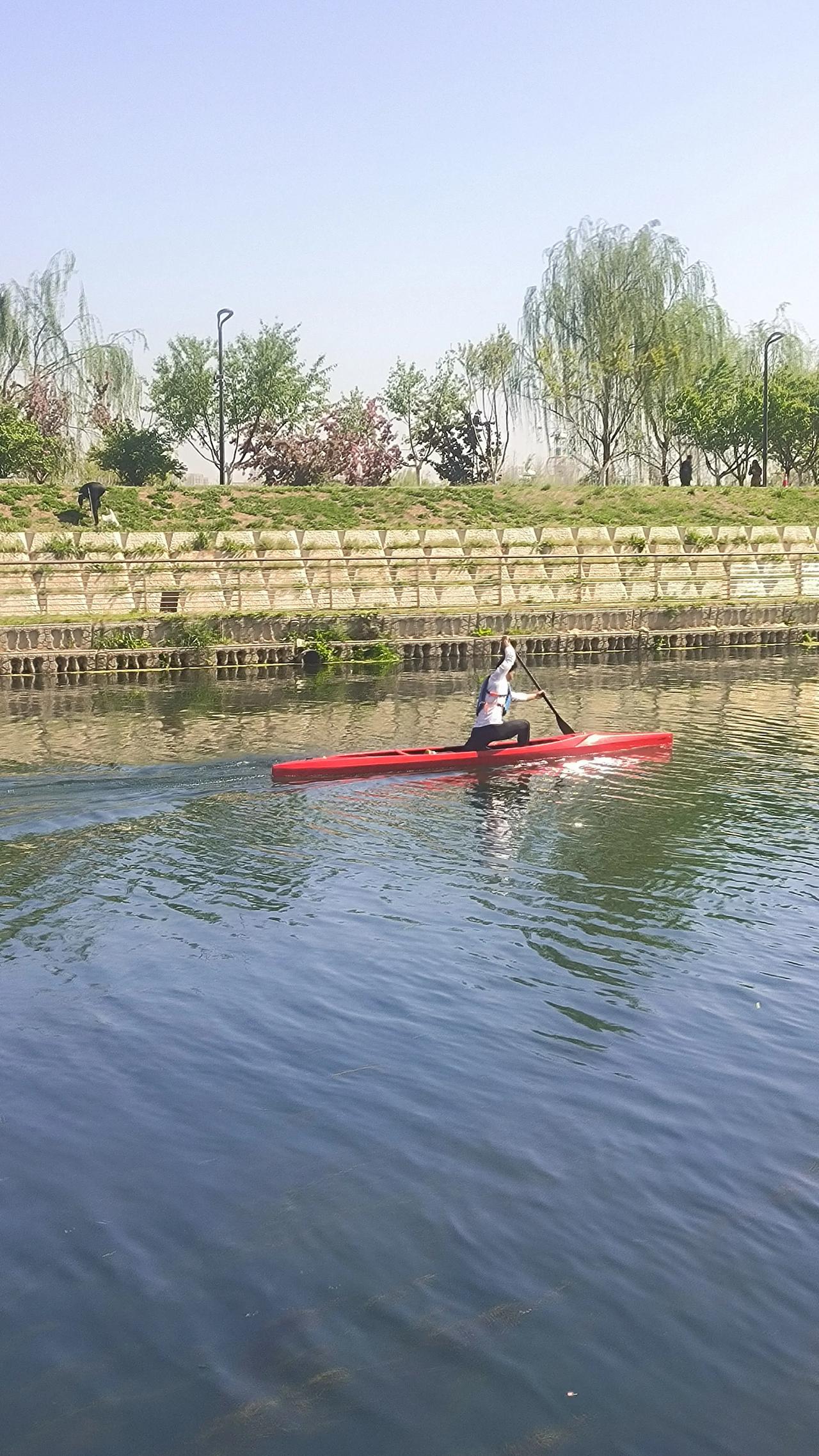 偶遇保定市皮划艇的队员在此训练。碧水清波,绿树倒映,水草丰茂,一派清幽。健儿们奋力划桨,五颜六色的小艇破水前行,与岸边美景融为一体,多么和谐的场面!