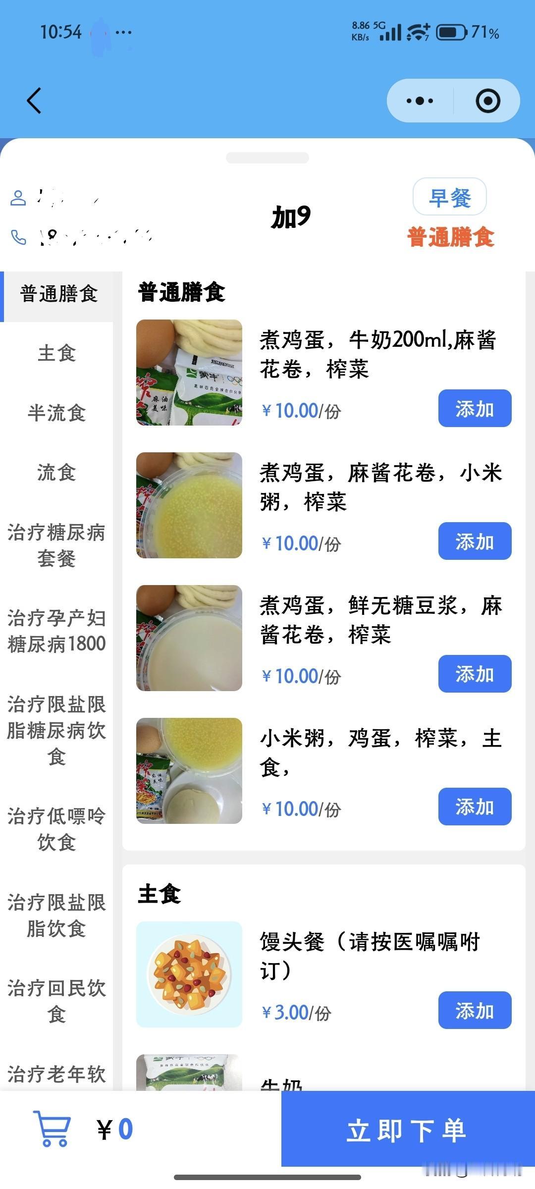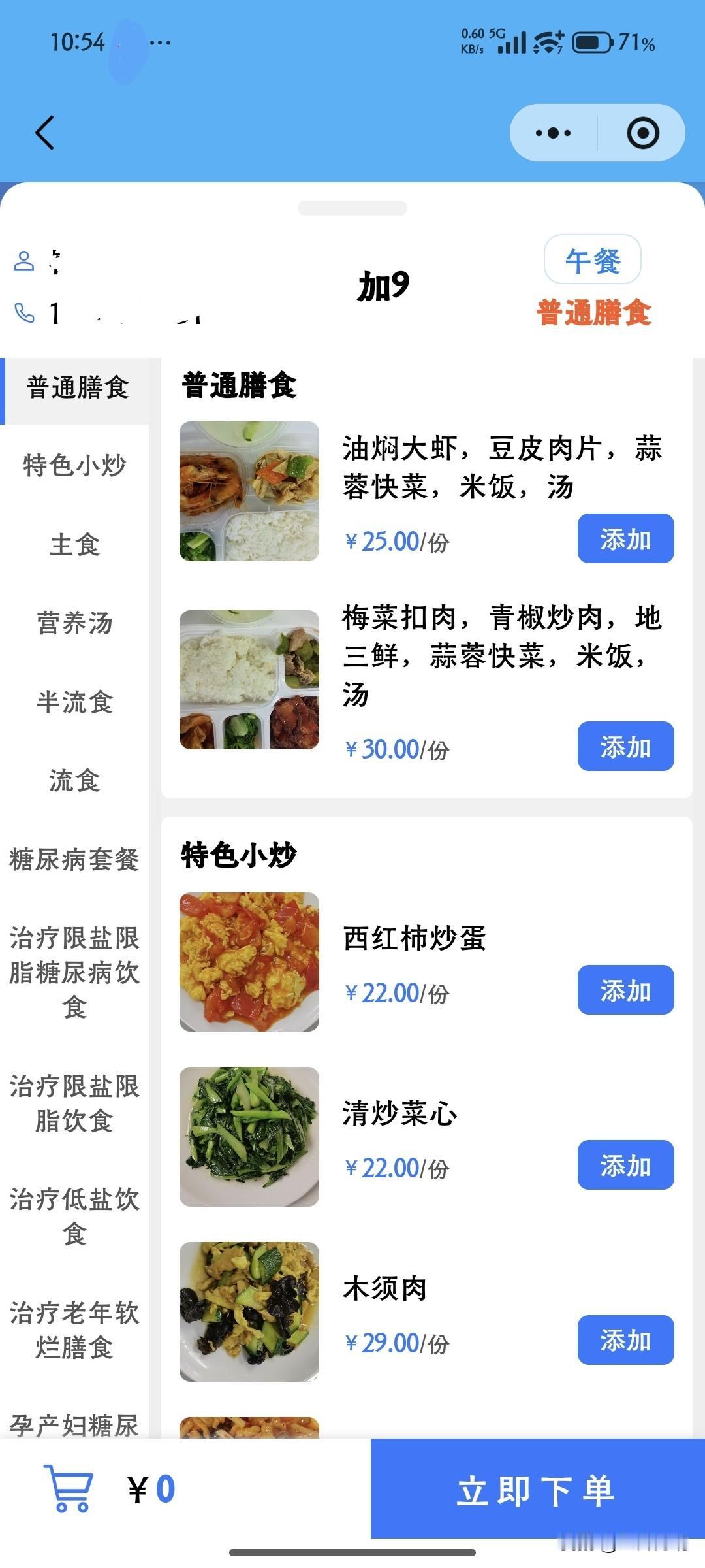 医院里订到的餐食,套餐早餐一般10块,午餐和晚餐一般25或者30,当然也提供小炒