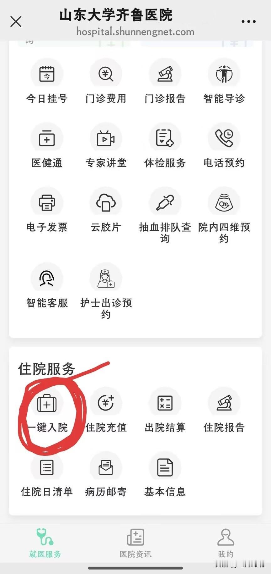 齐鲁医院病人可以直接在微信公众号上通过“一键入院”确认完病人的基本信息即可,之后会提示你通过“住院充值”完成押金的缴纳,几分钟搞定;然后就可以直接到病区的护士台,量下血压身高后,就带你去病房了,整个过程很快。