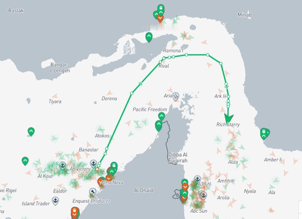 伊朗油轮,货轮,甚至不需要停靠,只要巴基斯坦默许伊朗船在其领海内,把油转移到另一艘船上就行。一艘受美国制裁的,“Rich Starry号油轮从阿联酋哈姆里亚港出发,通过了霍尔木兹海峡。这艘油轮载有约25万桶甲醇,是自特朗普,美国海军声称对霍尔木兹海峡封锁开始以来,第一艘试图驶出波斯湾的油轮,结果遭到美国海军无线电警告,最终在阿曼海域附近掉头。显然如果走正常航道,现在很容易遭到美军威胁。真没想到现代美国居然要率先无限制潜艇战,但是美军的阻止,基本遭到了大量油轮,货轮无视。