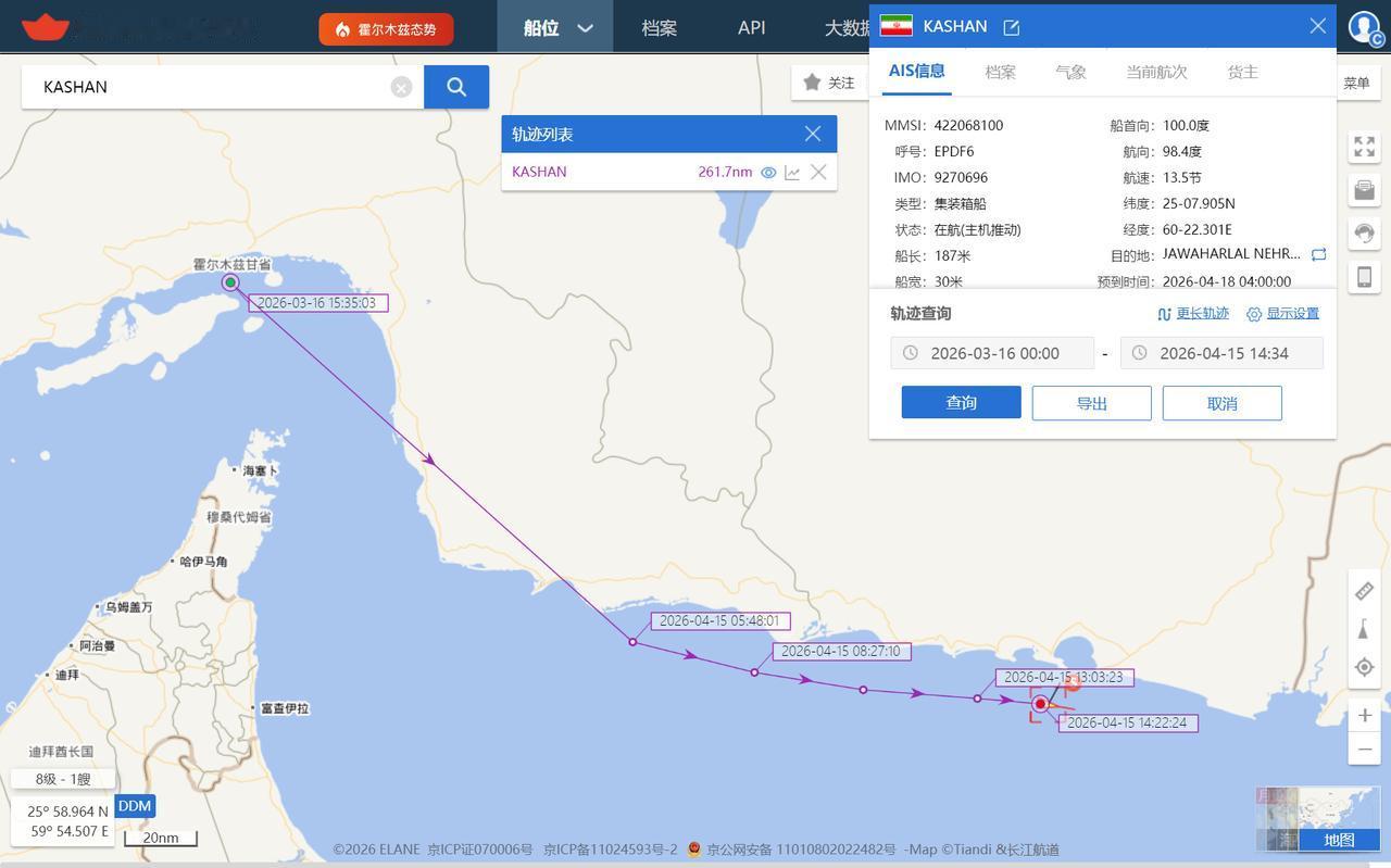 4月15日,一艘伊朗集装箱船开创了新的航线,打破了美军封锁:这艘3万吨的伊朗集装箱船在伊朗领海线内航行,然后直接驶入巴基斯坦领海,目前来看,这艘伊朗集装箱船的目的,还不是巴基斯坦港口,要进入印度领海。对于伊朗来说,自己的油轮,货轮,就算美军威胁要拦截,但是只要巴基斯坦不封锁,不参与围堵,伊朗油轮,货轮就可以驶入巴基斯坦领海,甚至直接驶入巴基斯坦瓜达尔港,停靠巴基斯坦瓜达尔港口。对于伊朗来说,只要思想不滑坡,方法总比困难多嘛。瓜达尔港的输油管线此时不用更待何时?