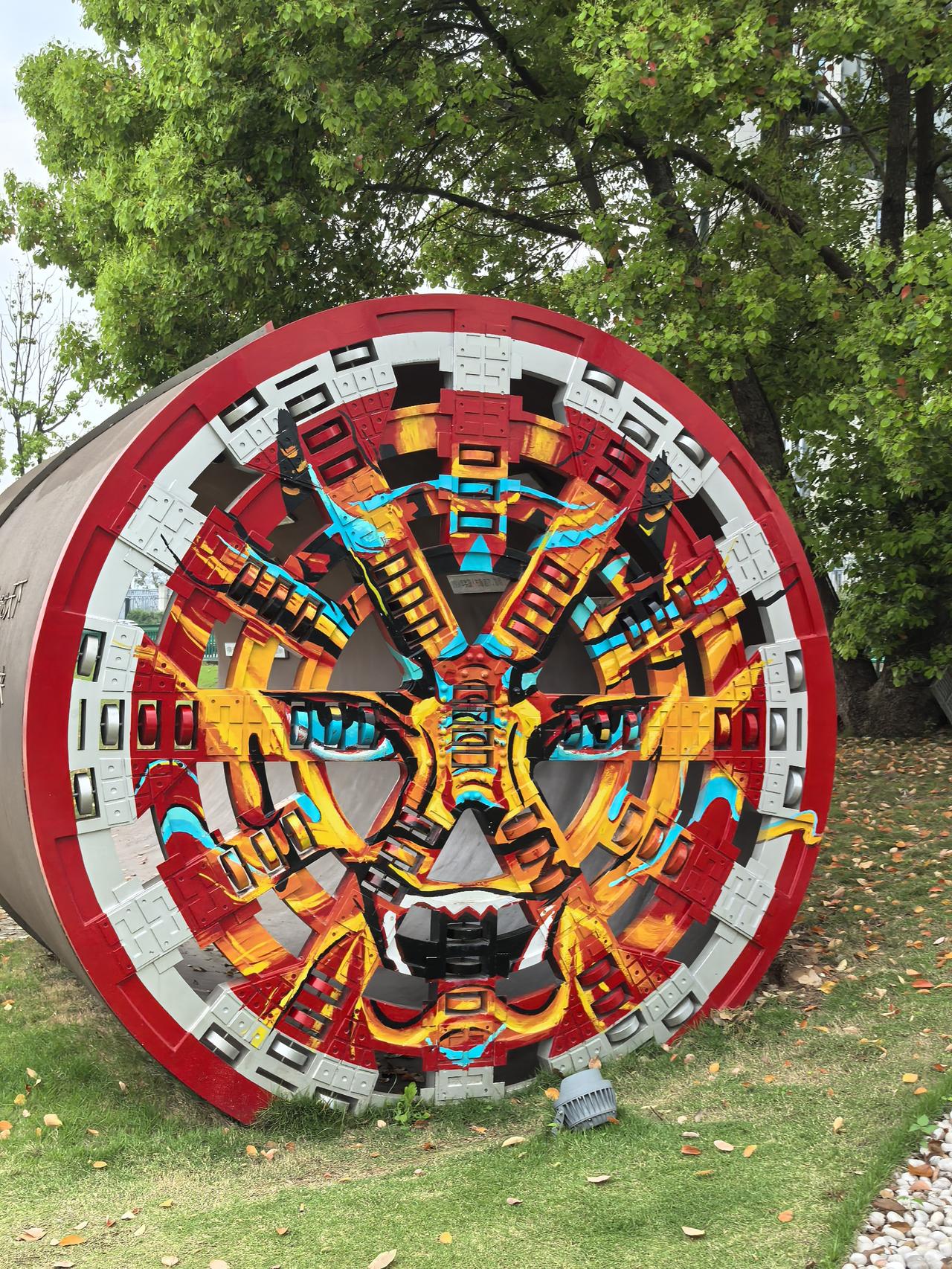 找到另一面才弄清楚,原来是钻山厉器盾构机的模型。它的色彩斑斓的虎面需要手动拼找,才能还原完整的画面,互动趣味满满。