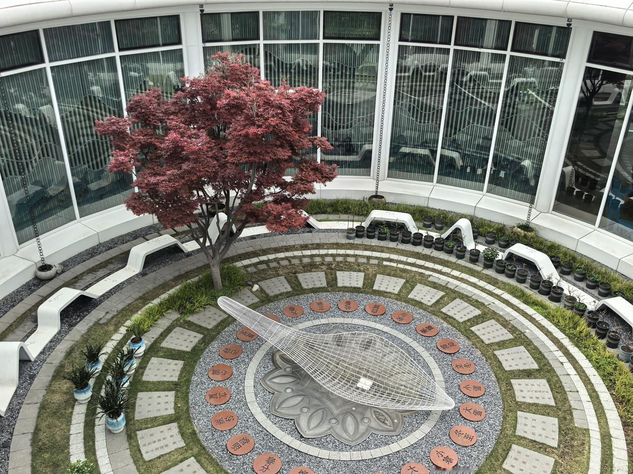 园区内摆着一个奇特的物件,远看就像是少数民族的图腾,我琢磨半天,没有看出来是什么东西。