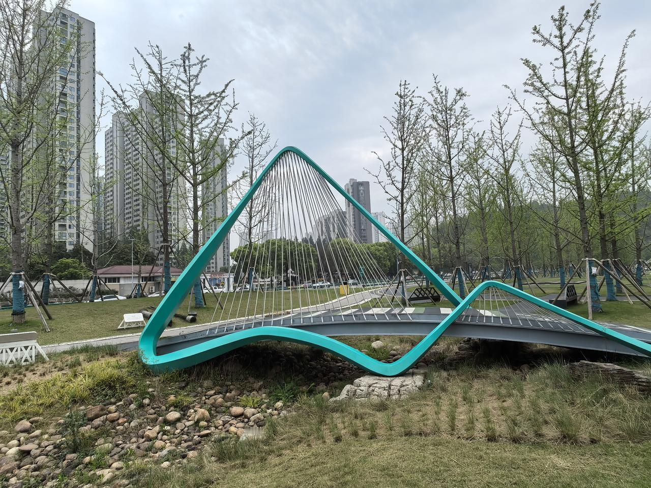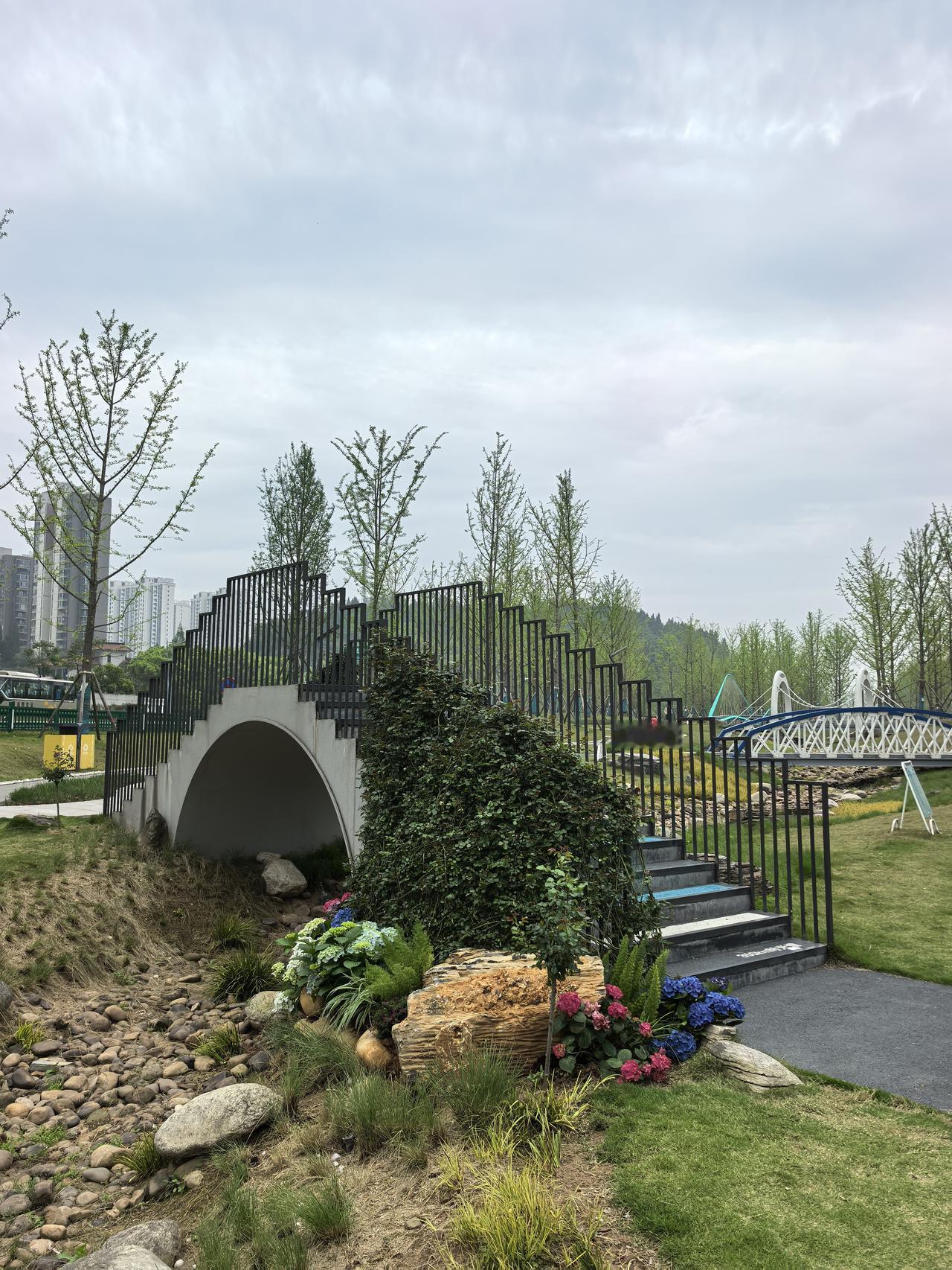 石阶路叫花语长梯,石阶之上静静镌刻着一座座长江大桥的故事,一步一光景,一阶一历史,设计者有心了。园区四处散落着各式桥梁模型,拱桥、斜拉桥、悬索桥错落有致,附有简单的说明和世界同类桥梁的排名前20,其中中国上榜的桥梁非常多。