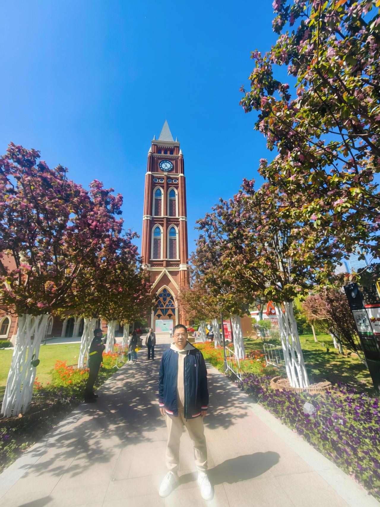 今天天津天气很暖和,我与妻子出来晒晒太阳,花香、太阳、绿色,一切都是美好的,祝大
