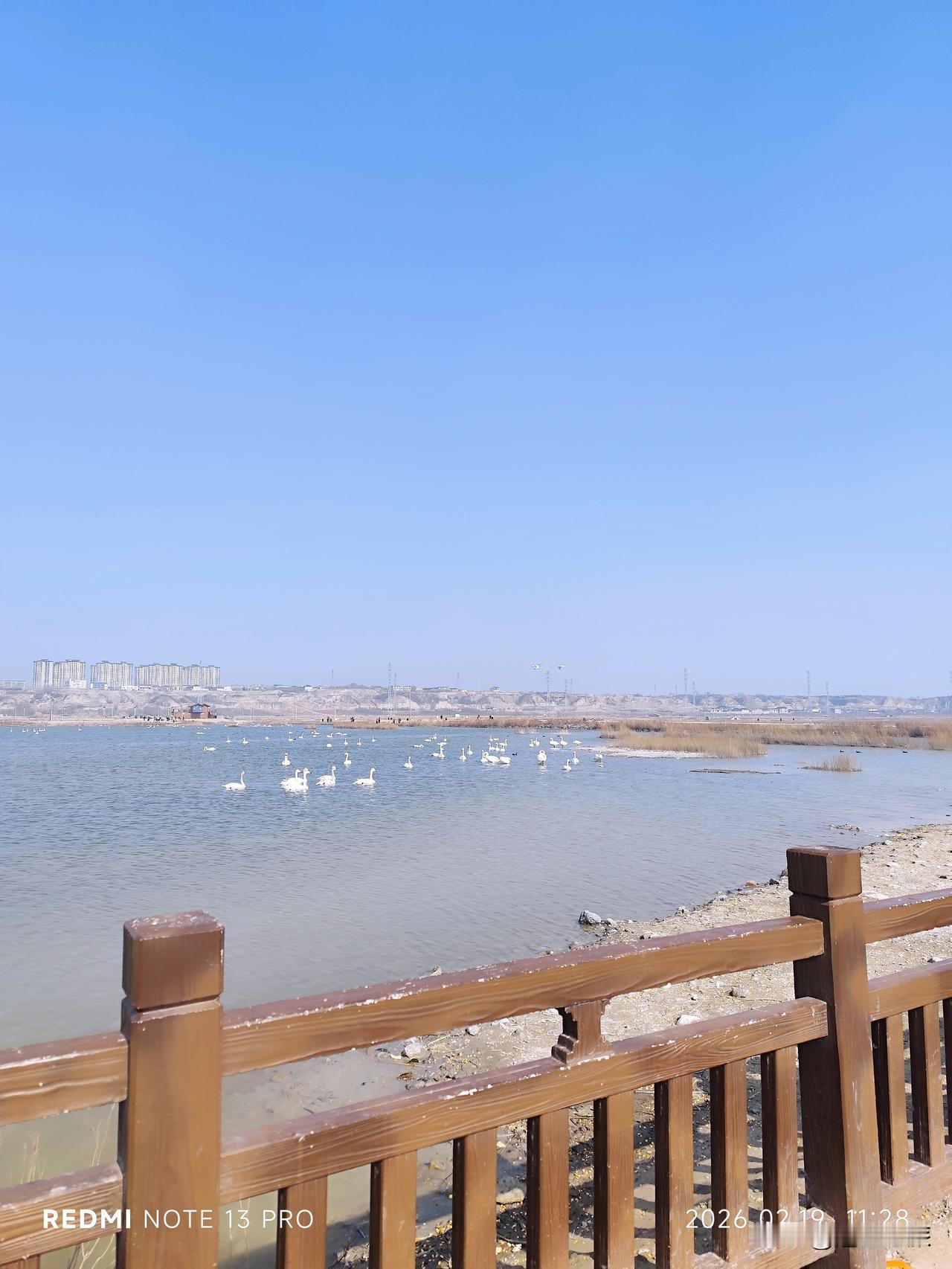 大年初三在山西运城盐湖看天鹅。 驱车来到盐湖的天鹅栖息地,感觉风里都有点盐池清冽