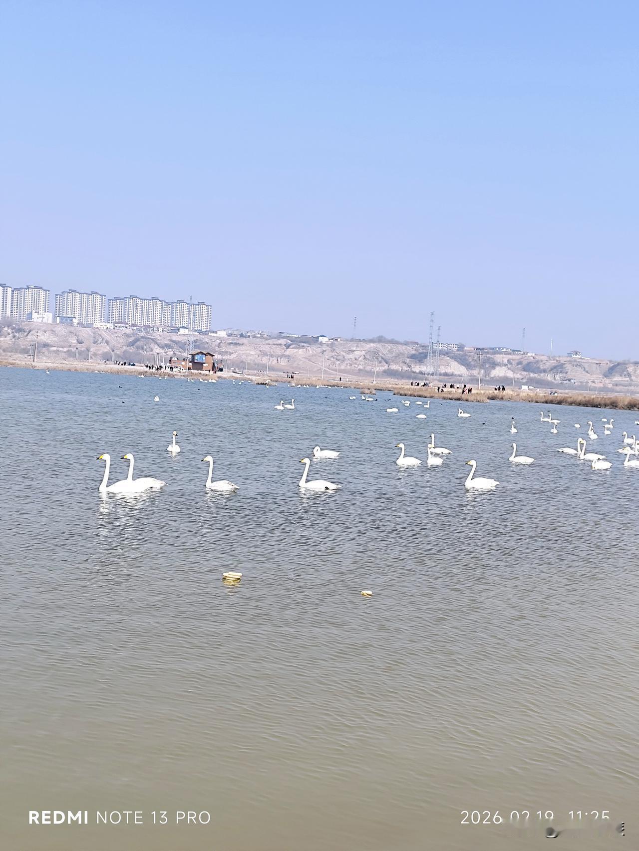和天鹅不期而遇,是春节吉祥的礼物,河东大地的冬日,不止有千年盐韵,还有万羽翩跹的浪漫。