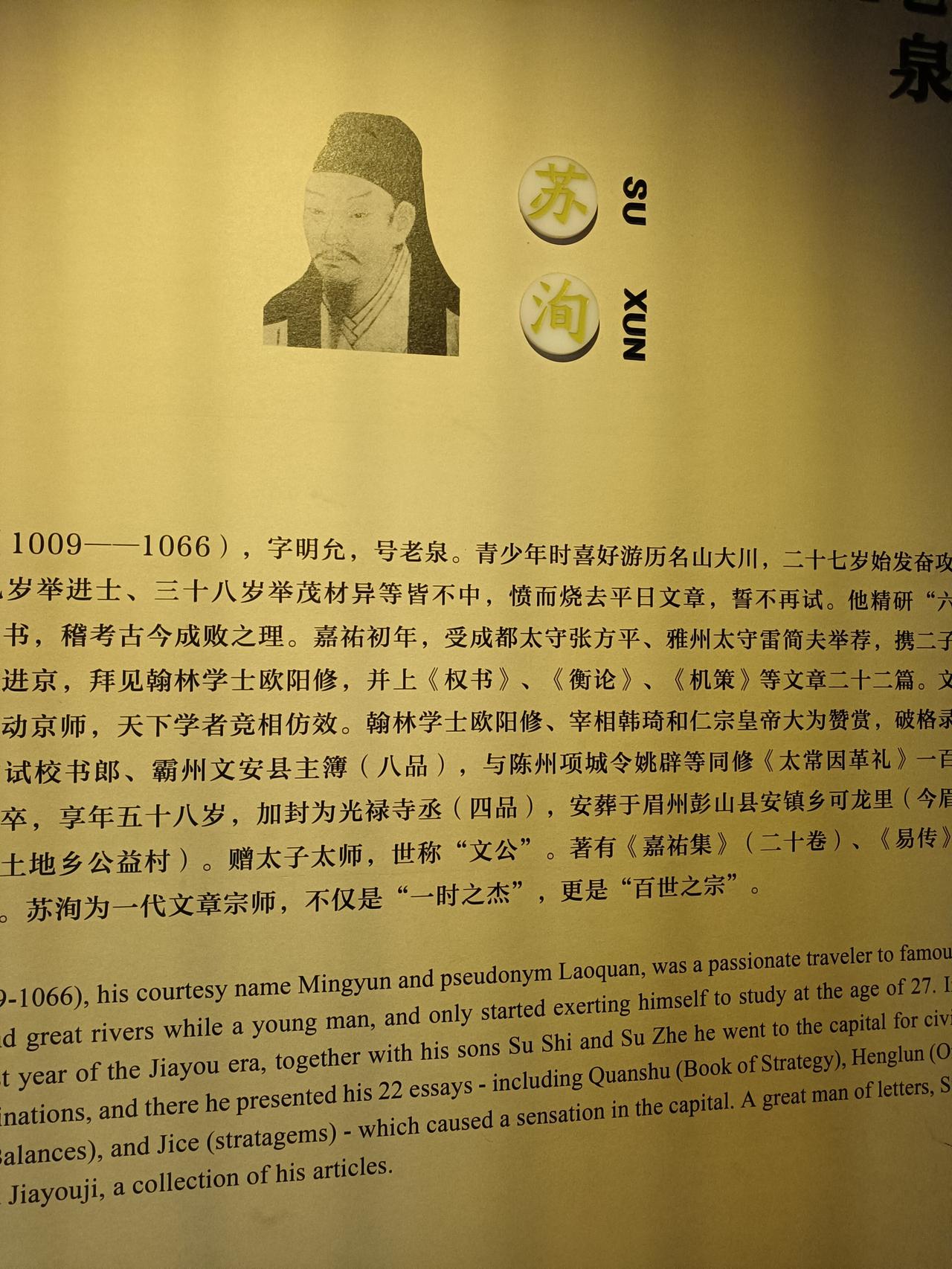 到了眉山,先去三苏纪念馆,首先了解三苏的生平及文学成就,为官一任造福一方的业绩及家风家训,然后再去三苏祠。