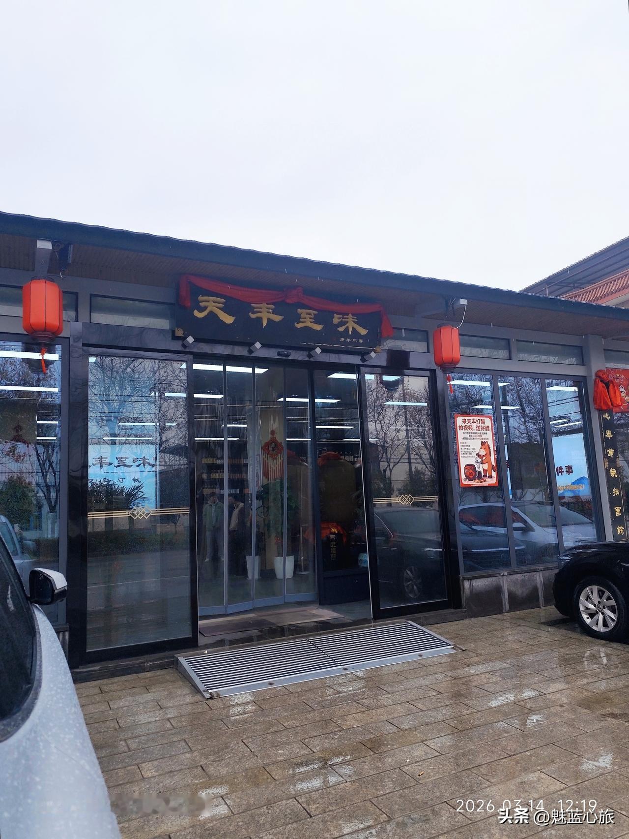雨淅淅沥沥没小半分,雨幕里的鄠邑街道少了喧嚣。一路湿润抵达天丰至味门前,掀开门帘,醇厚酱香扑面而来,一扫雨天赶路的疲惫。