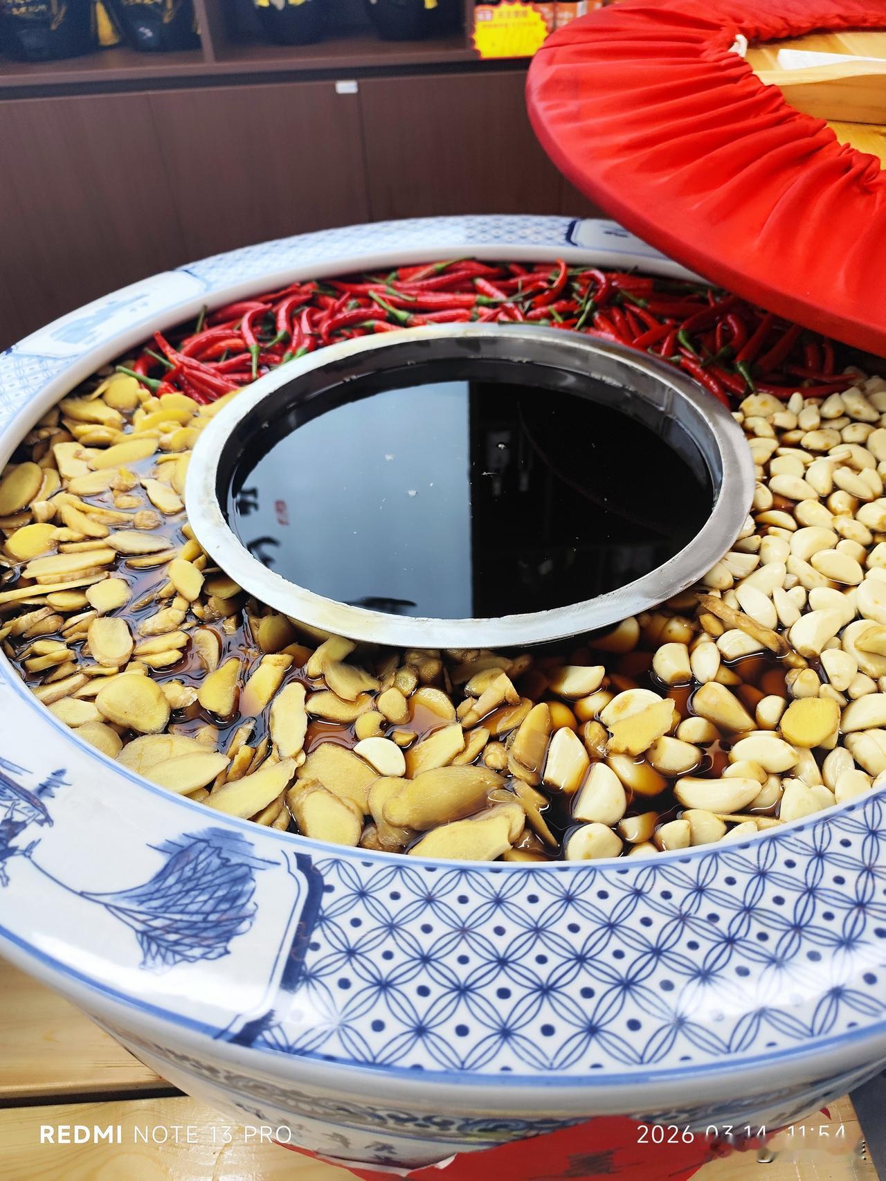 白纸黑字的“天丰至味”下,4个大缸整齐排列,分别有姜蒜辣醋、黑苦荞醋等4种口感的,有小杯可以品尝。