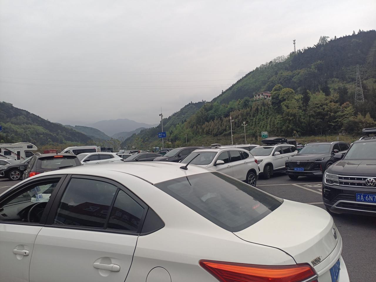 下午3点多到龙池服务区,车非常的多。原来是四溪沟风景区入口,今天是假期人多车也多。