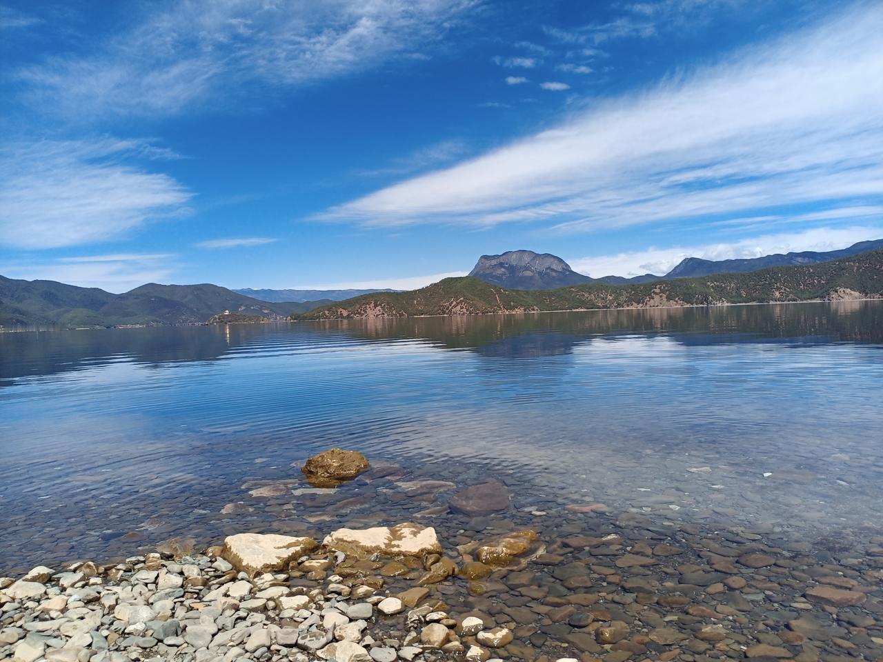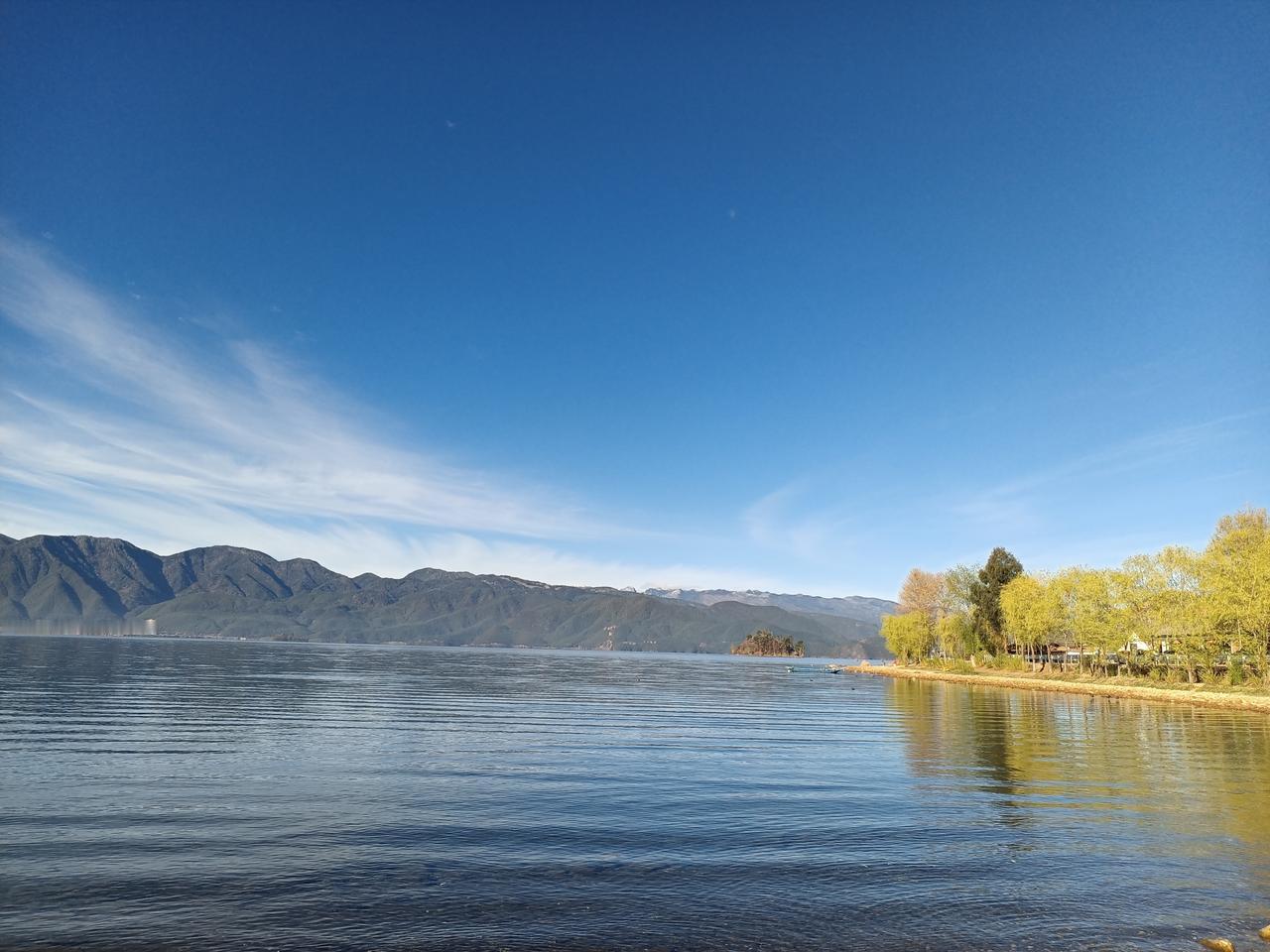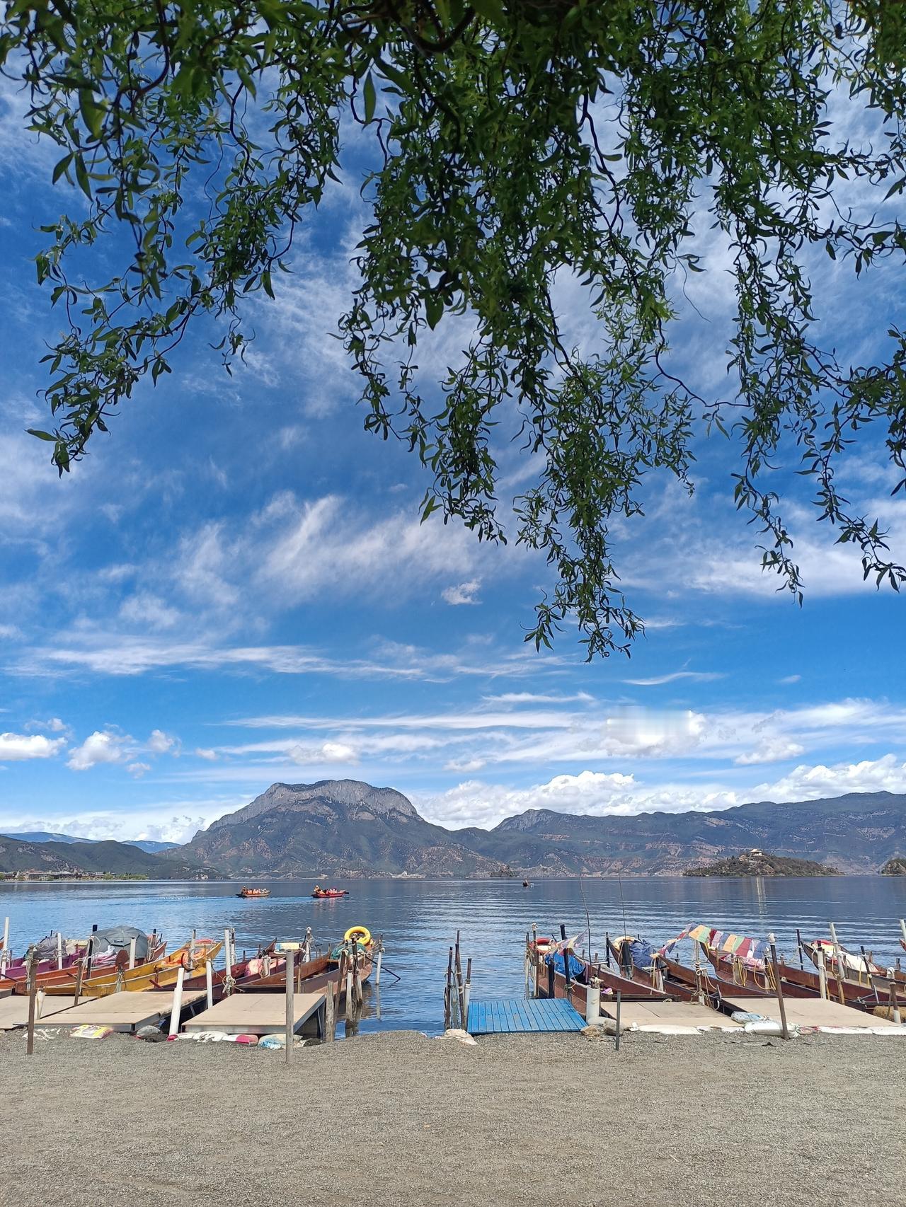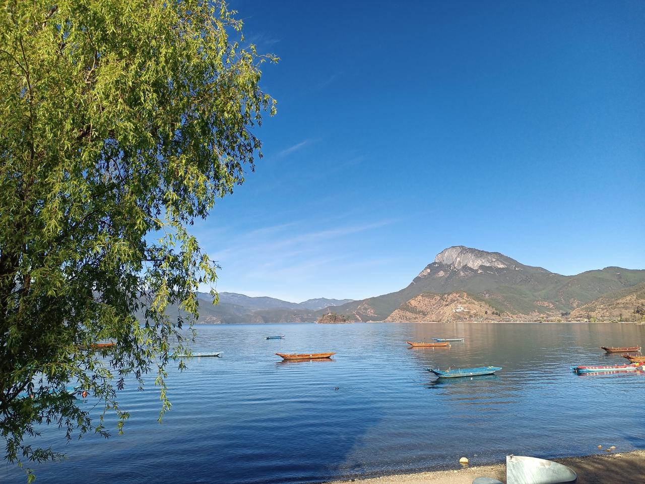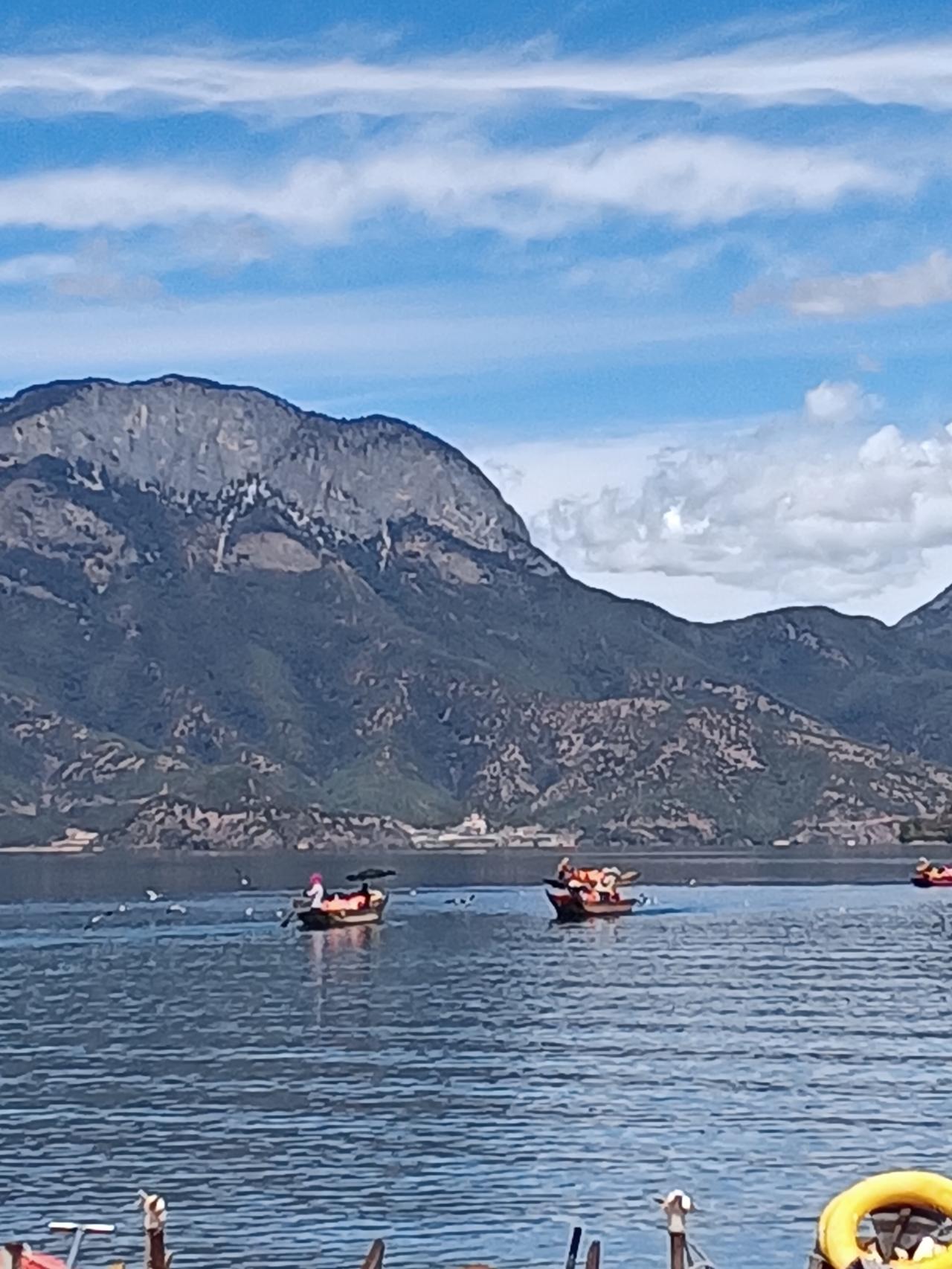 昨天傍晚泸沽湖下了一小阵雨。