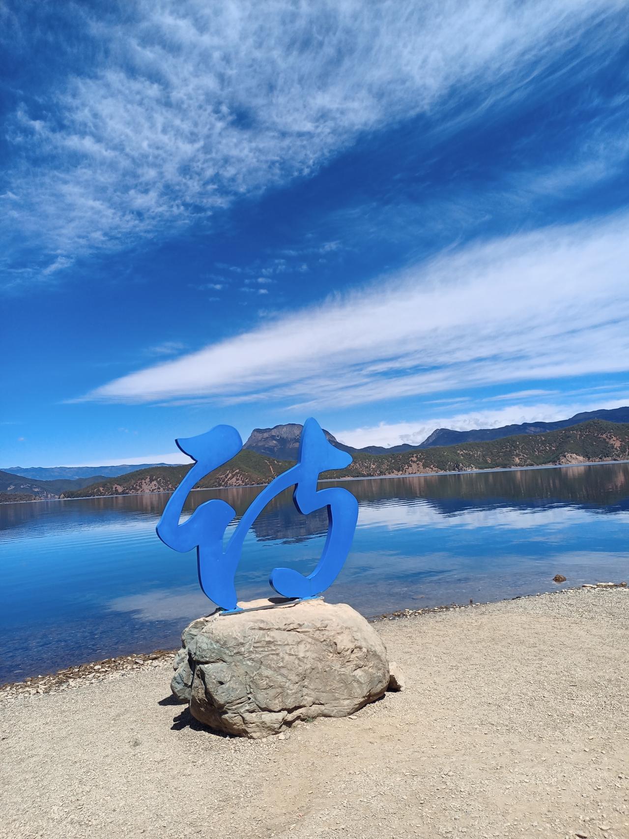 老天爷可能心疼我们大老远的来了,不把泸沽湖美景呈现给我们怕我们失望,今天的泸沽湖晴空万里,天湛蓝湛蓝的,白云有的呈朵状,有的呈一条弧线,湖水在阳光、蓝天、白云的映衬下也蓝的耀眼如同仙境。