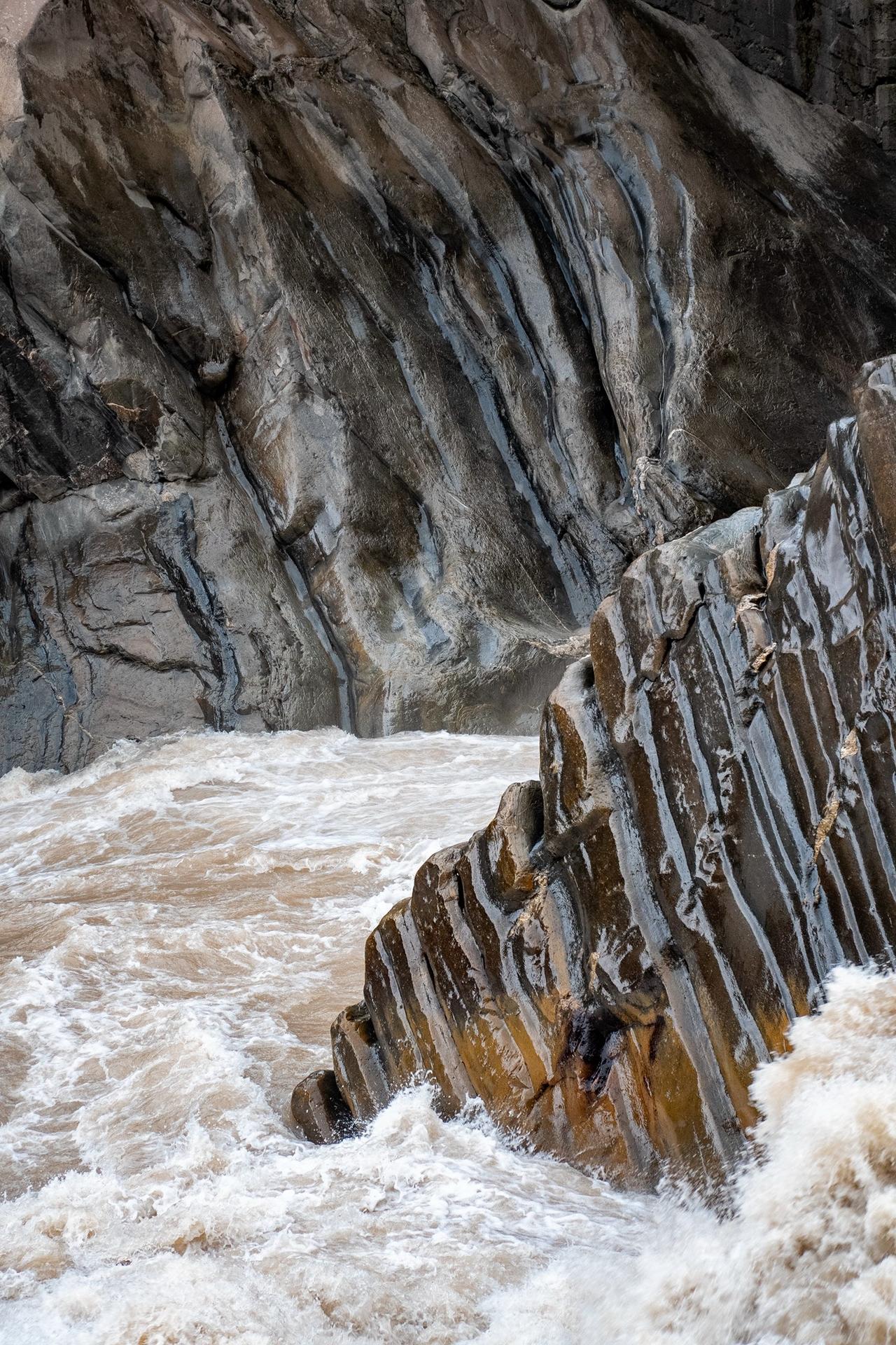 此处险峰高耸入云,金沙江从长江第一湾奔腾而下,以巨大落差深切玉龙与哈巴雪山之间的峡谷。江水在此形成数道奔腾咆哮的飞瀑,气势雄浑,蔚为壮观。