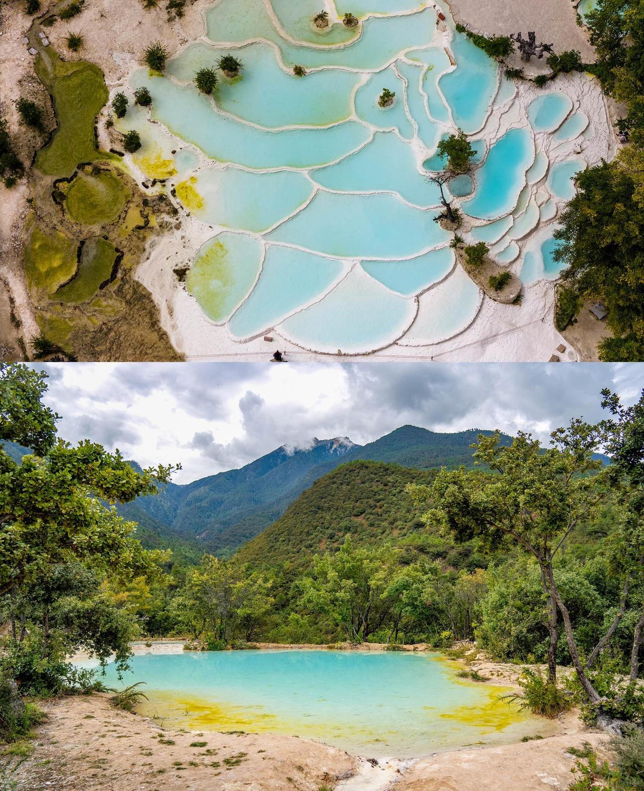 地质奇观白水台位于香格里拉三坝乡白地村,层层叠叠的钙华池景色梦幻,是传说中的“仙人遗田”。