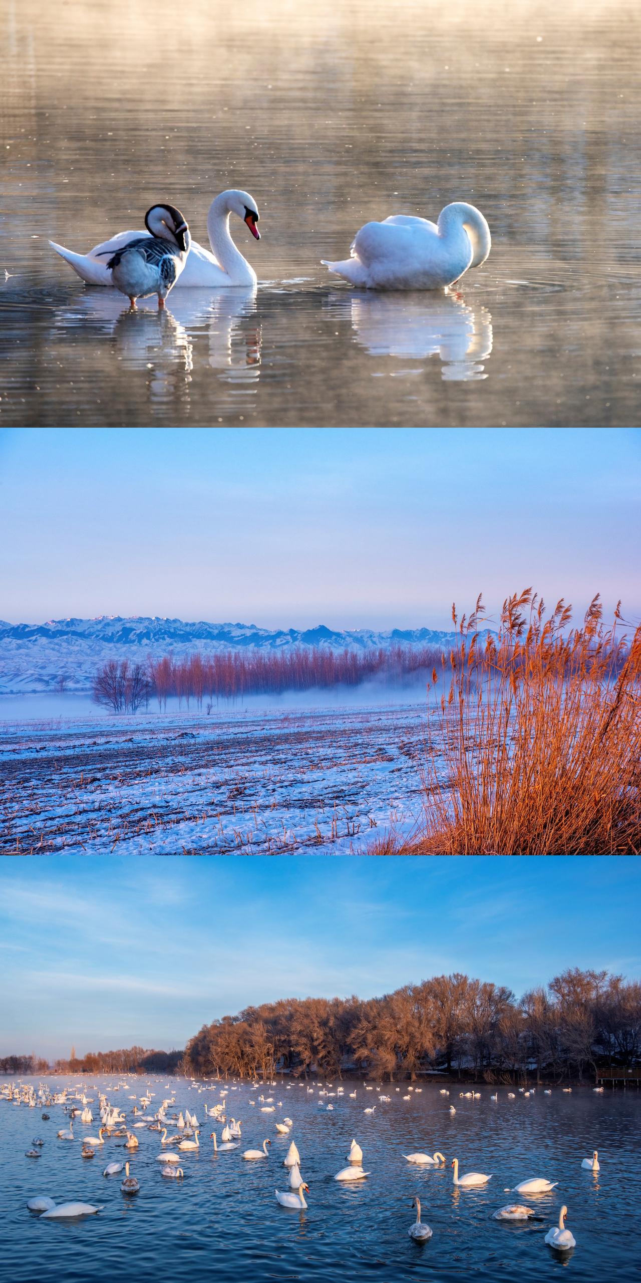 ✅天鹅泉湿地公园:温泉和雾凇、天鹅完美搭配,随手拍出油画大片。一定要赶在日出之前进园,光影效果绝了。
