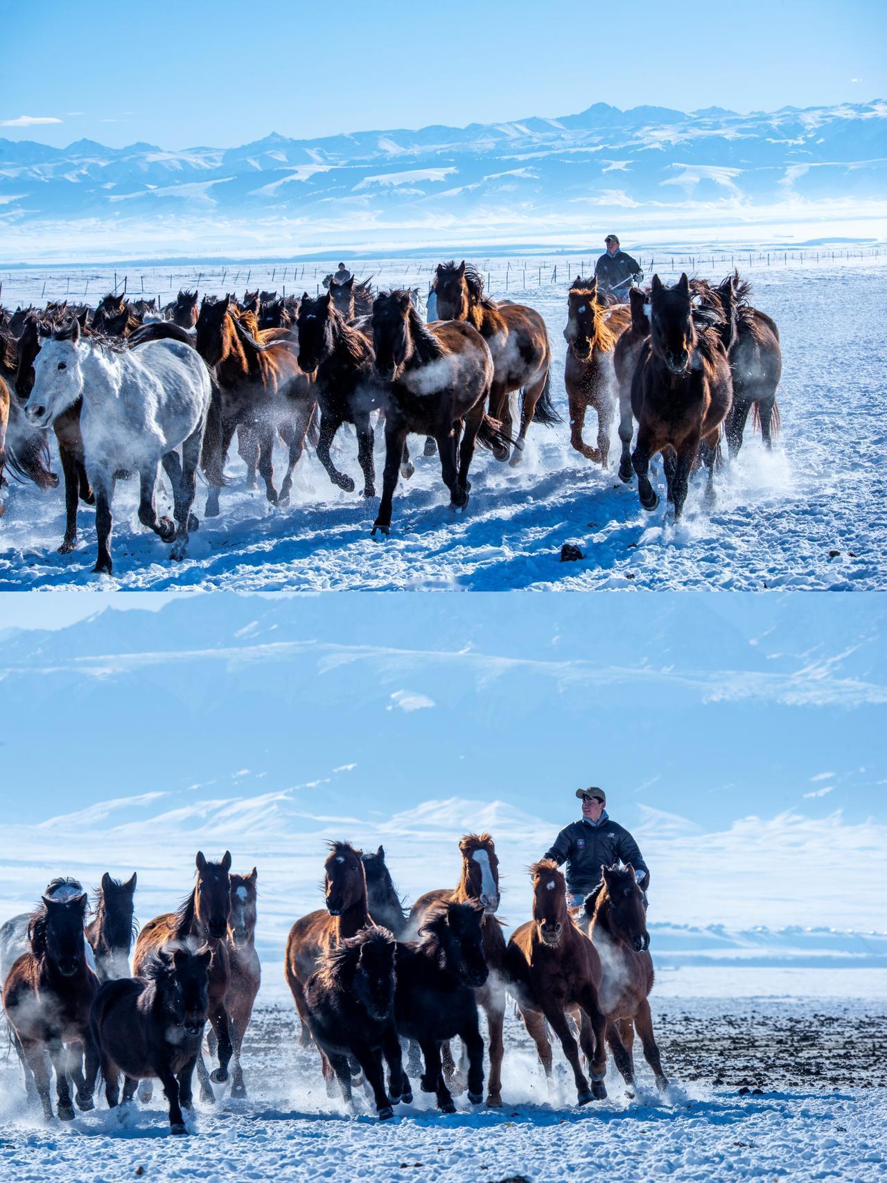 ✅昭苏天马文化园:成群天马奔腾踏雪而来,马蹄扬起阵阵雪花,脑海里不停响起BGM,非常震撼。