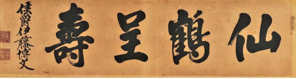 图三、图四也是伊藤博文的书法。伊藤博文一生东亚政策的核心是将朝鲜变成小日子的保护国。他最终在哈尔滨被安重根刺杀身亡。