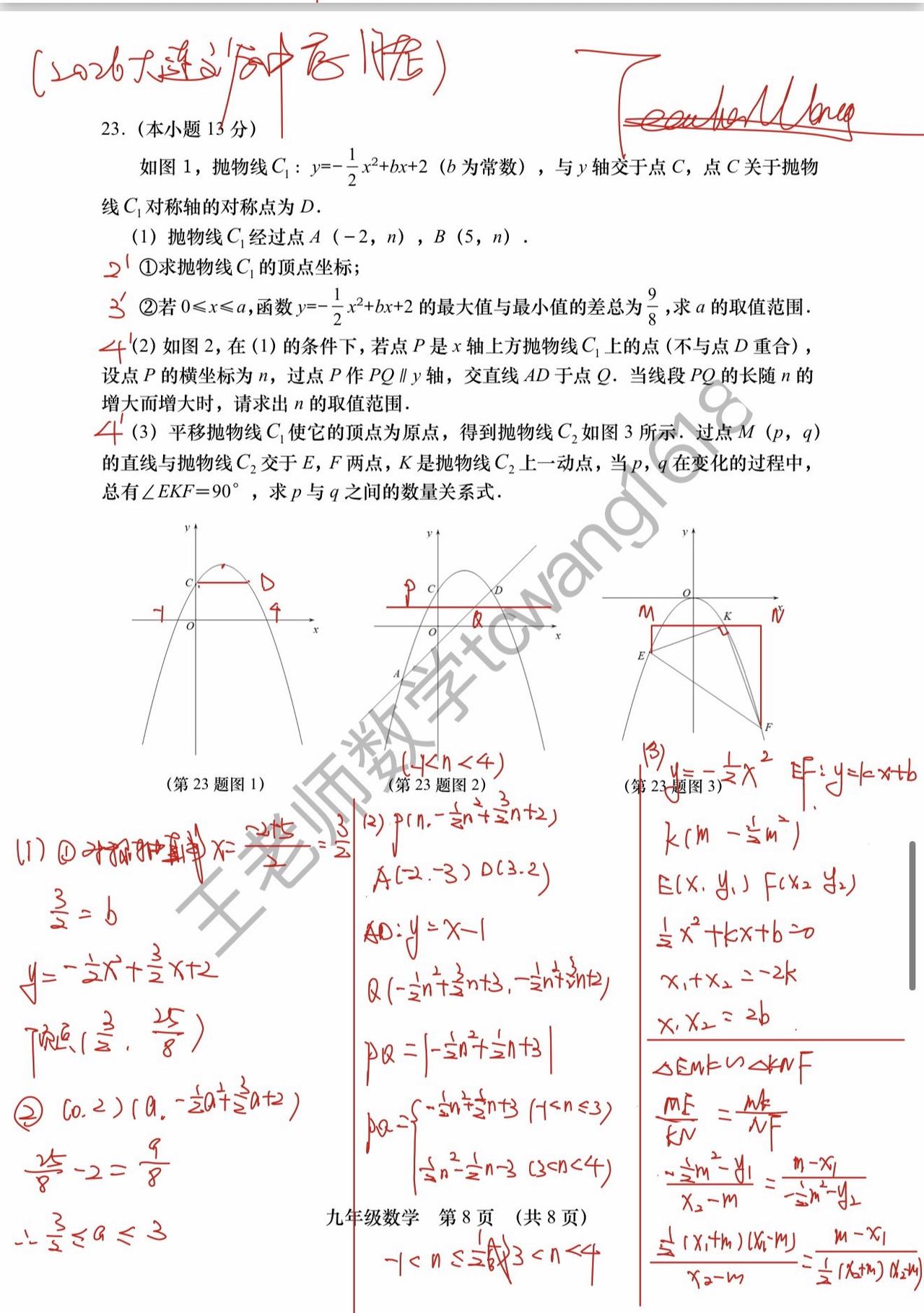 和甘井子区月考题型很像,题目质量不错 有一定参考价值 22题的自己画图分情况讨论