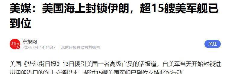 谈崩后的美国恼羞成怒,4月13日晚间,封锁令正式生效,15艘美军战舰杀气腾腾封锁港口。