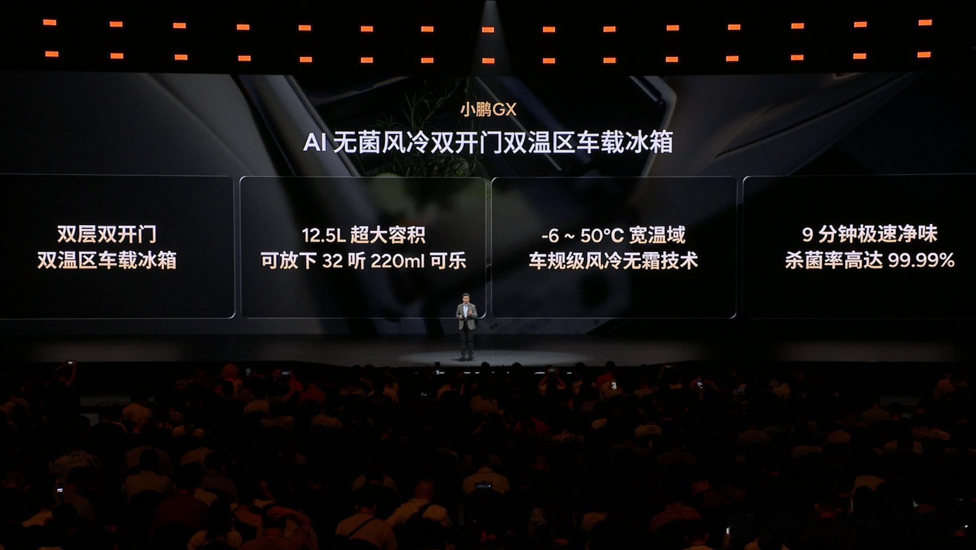 小鹏GX全球首发AI的这个无菌风冷双开门车载冰箱,容积有12.5L,什么概念呢?