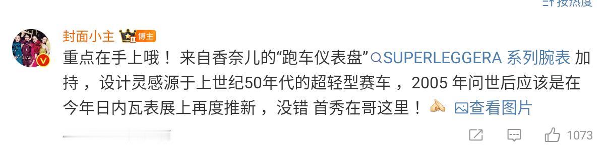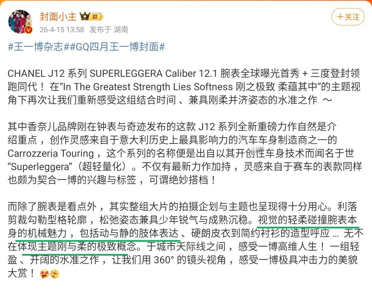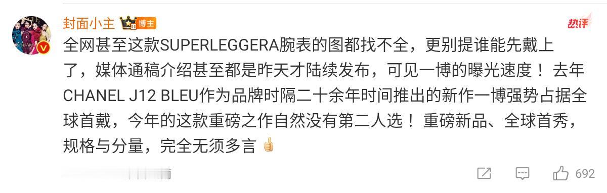 刚刚发布的香奈儿SUPERLEGGERA腕表,在全球曝光之前已经提前戴在了王一博的手上。腕表设计灵感来自于上世纪50年代的超轻量化赛车,没有谁比85号车手更适合这款重磅新品。