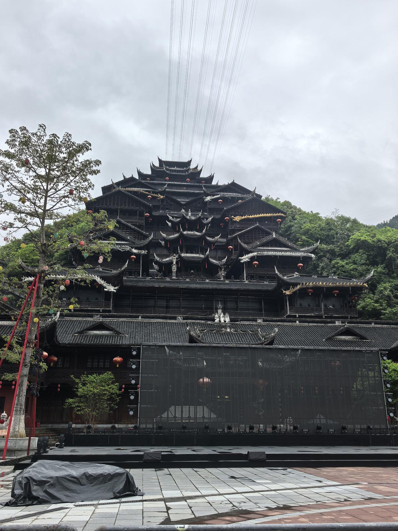 蚩尤九黎城是中国最大的苗族传统建筑群,拥有三项大世界基尼斯之最:九道门、九黎宫、九黎神柱。