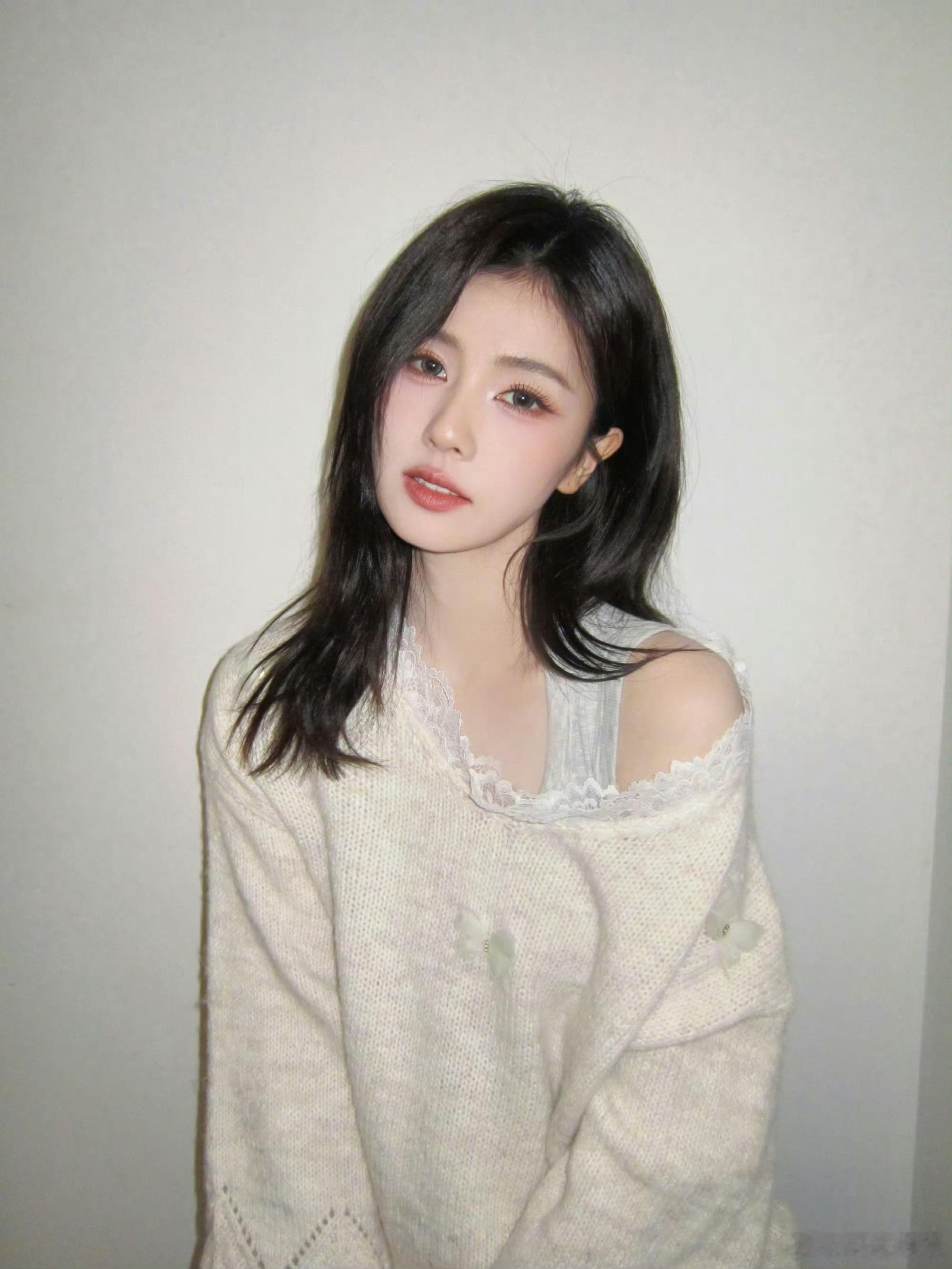 白鹿蕾丝露肩白鹿这组随拍真的美晕我慵懒卷发搭配奶呼呼的蕾丝露肩毛衣,精致锁骨和绝