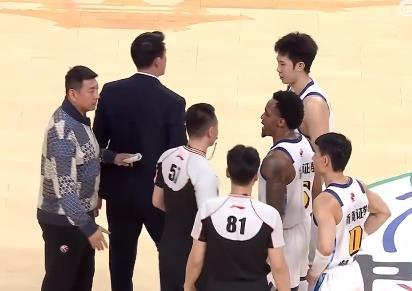 浙江广厦主教练王博走进场内和裁判员理论,被裁判直接夺权驱逐出场。 当时浙江广厦发