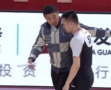 浙江广厦主教练王博走进场内和裁判员理论,被裁判直接夺权驱逐出场。