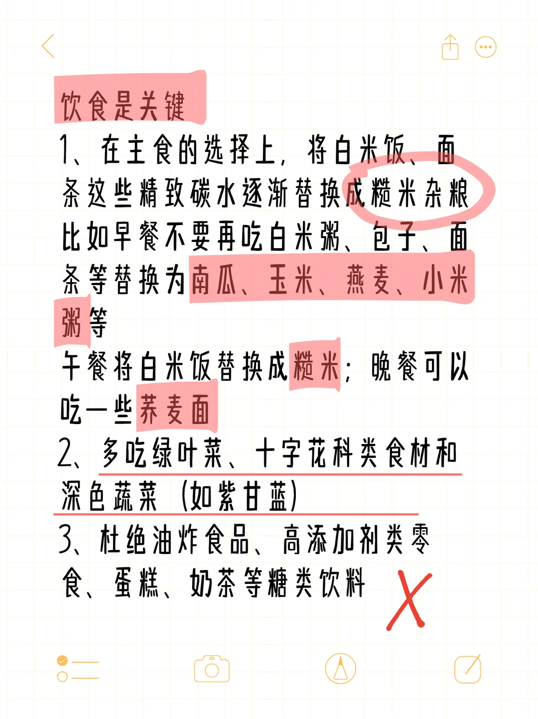 1️⃣在主食的选择上,将白米饭🍚面条🍜