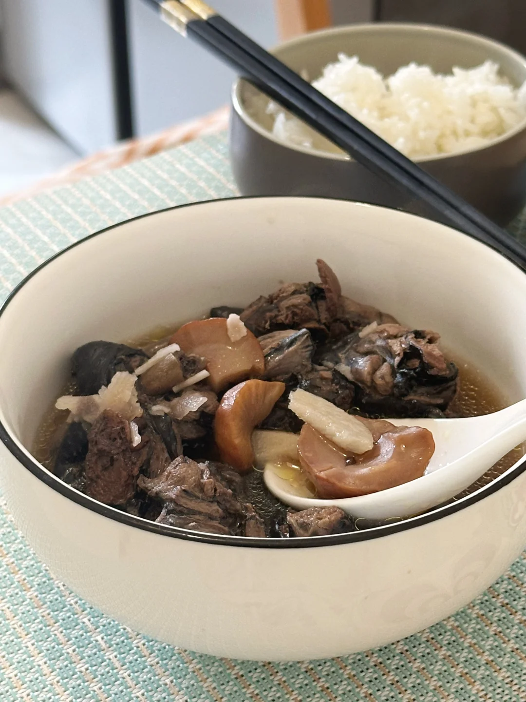 1、主食:茯苓粉蒸米饭/黑芝麻黑桑葚馒头,腐竹烧蘑菇(素版沉降菜)