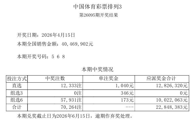 与之同时,排列三直选也爆奖12333注,组六也中出57931注,单期派奖2284万,而本期排列三的销量是4046万。