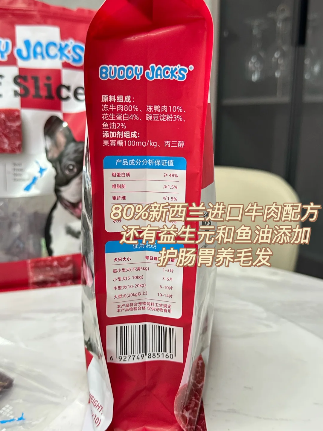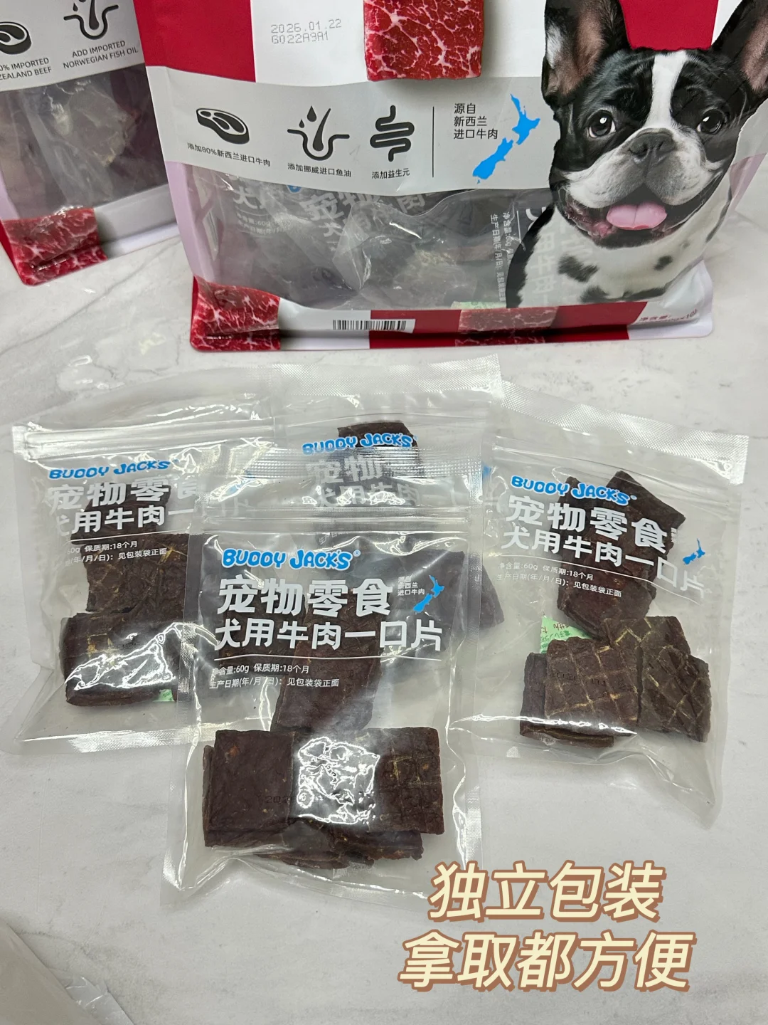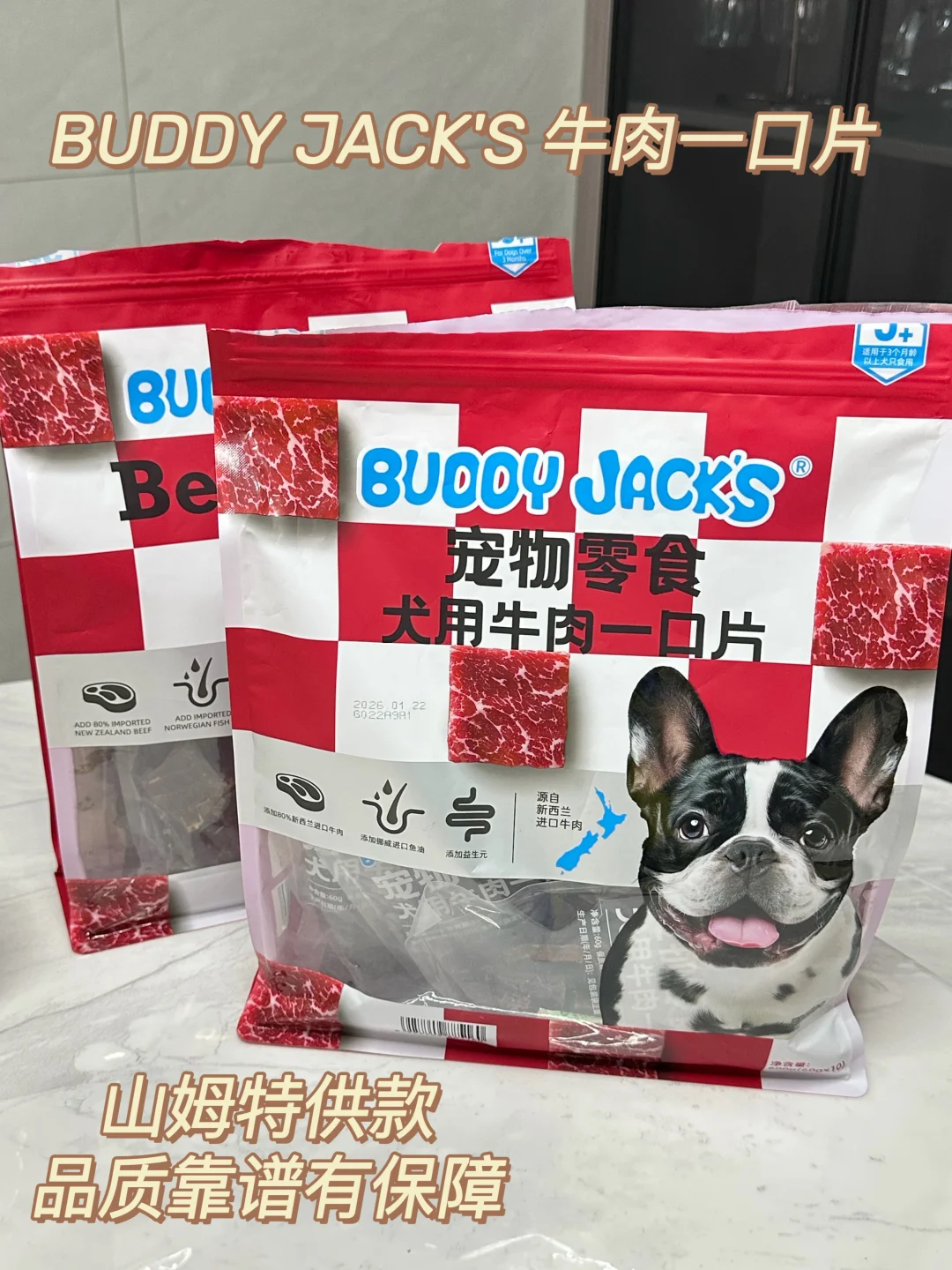 特供款品质一直很靠谱,足足80%都是新西兰进口牛肉,闻着全是纯粹自然的肉香,我家狗子每次闻到香味立马就凑过来舍不得走开,里面还贴心加了鱼油和益生元,既能柔顺养护毛发,又能温和调理肠胃,就算是肠胃比较敏感的小狗吃着也完全没负担,独立小包装干净又防潮,平时出门遛狗、在家训练随手就能拿,还是小巧的方形单片设计,不用动手掰开,直接投喂特别省心,早就稳居我家常备囤货清单,每次去山姆都会稳稳囤上两包
