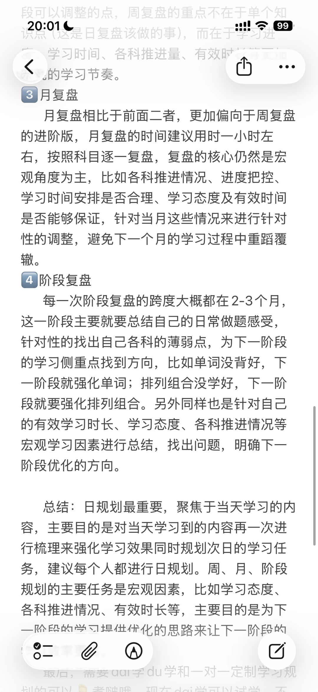 阶段复盘(2-3 个月一次):定位薄弱模块(数学 / 逻辑 / 英语),明确下一阶段主攻方向,优化整体规划。