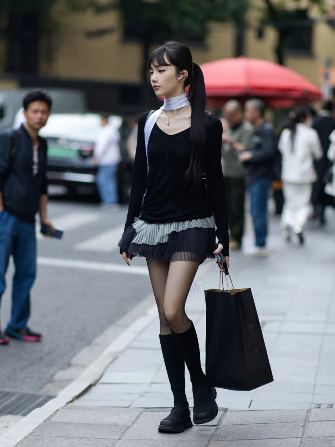 清新学院风穿搭,白色衬衫+黑色百褶裙,甜美又优雅!💕