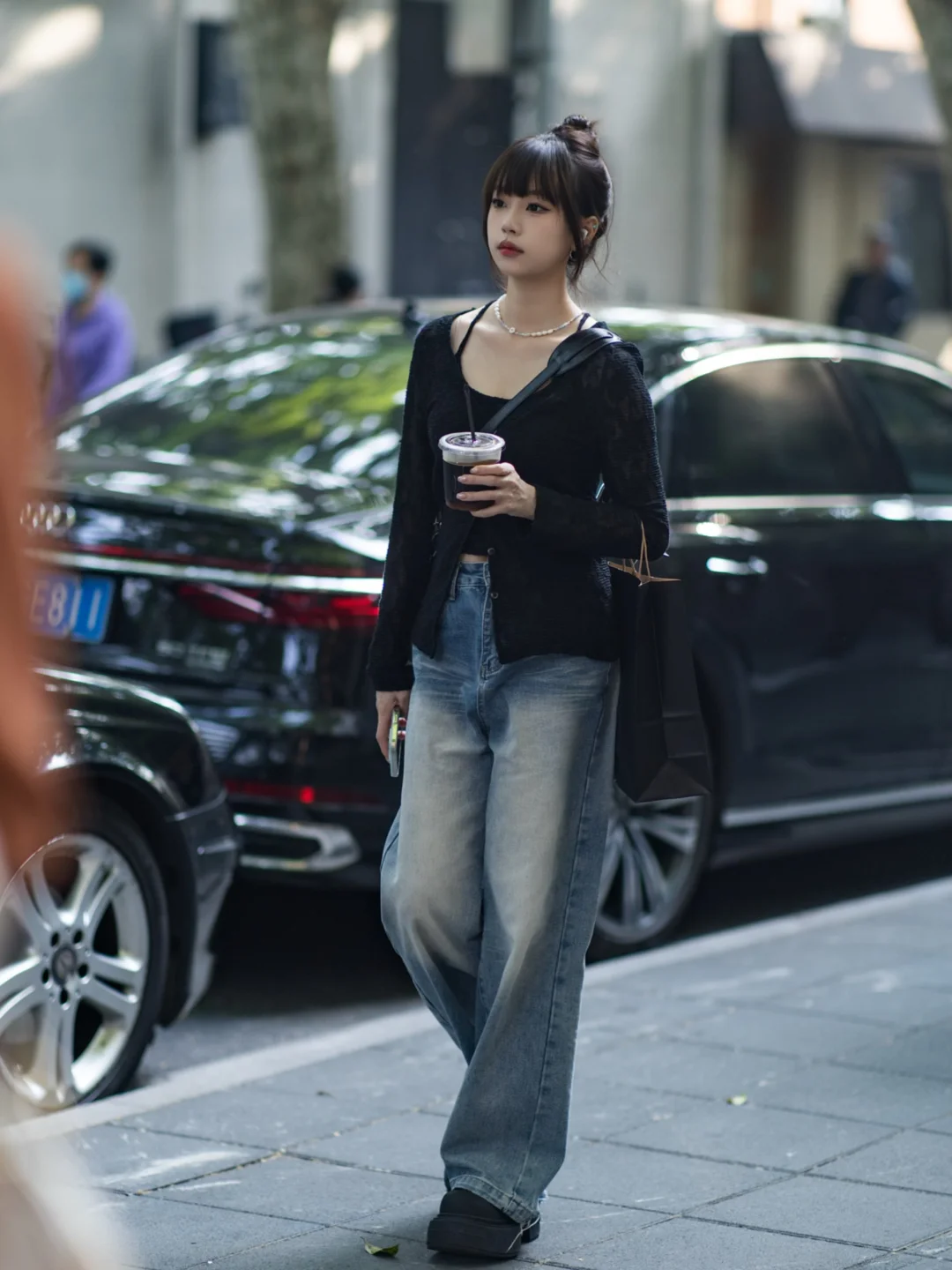 被刘雯这身机场穿搭狠狠种草!娃娃领针织衫+白衬衫,温柔又减龄,阔腿牛仔裤+乐
