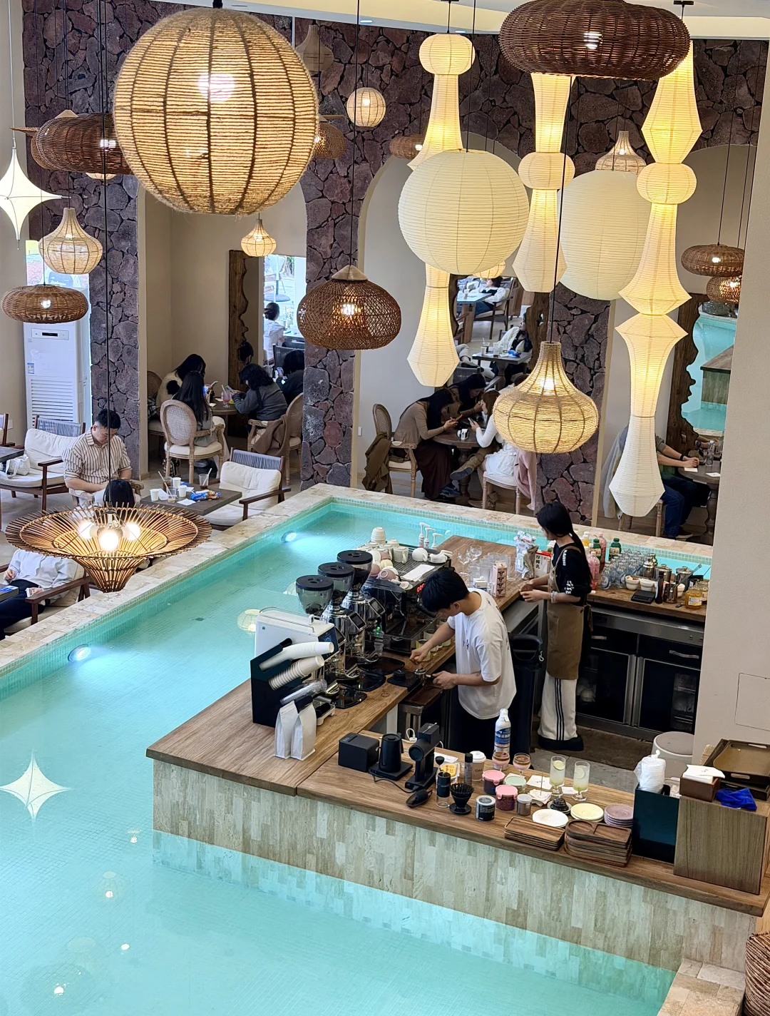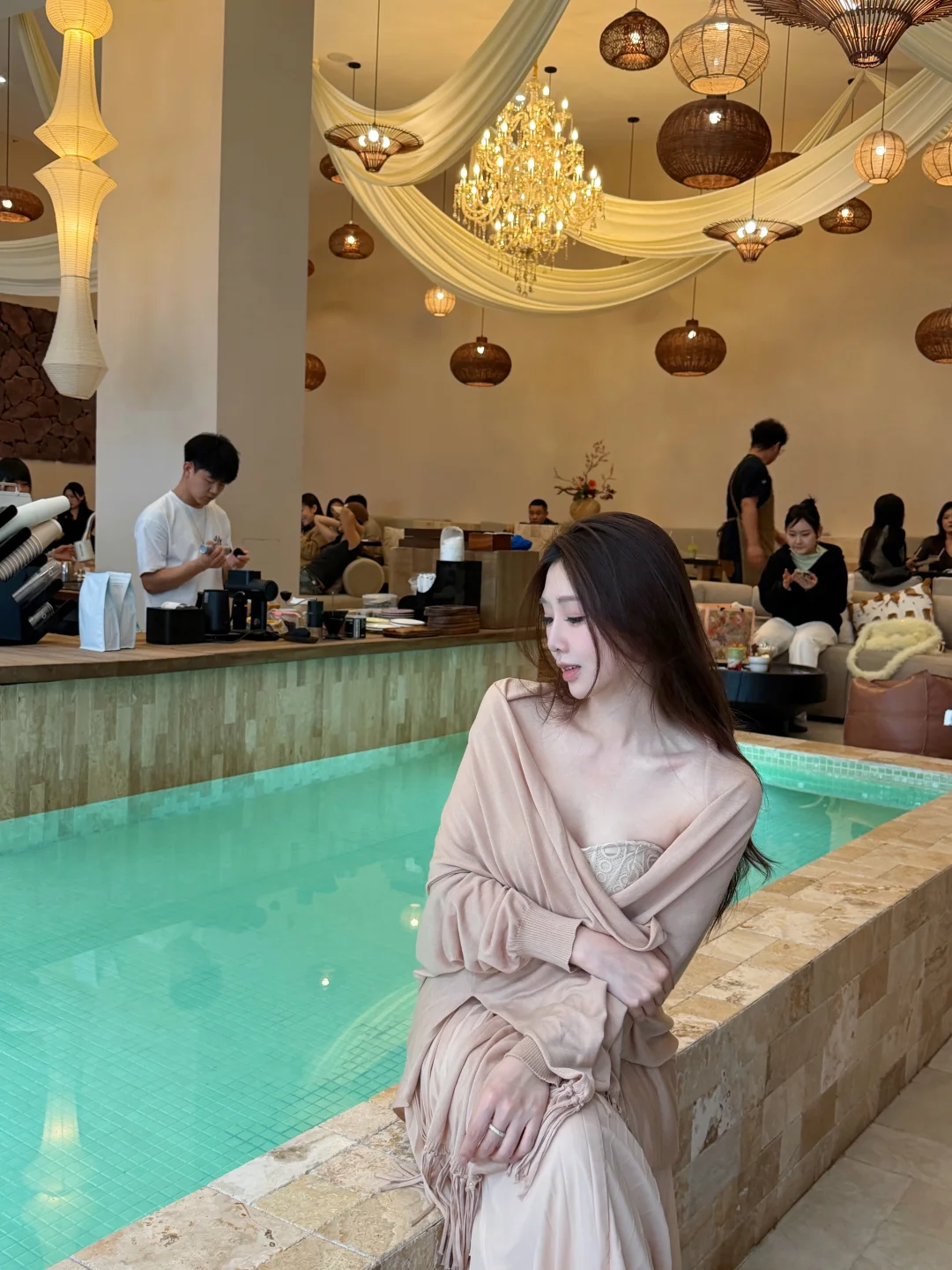 轻透的泳池水吧台
