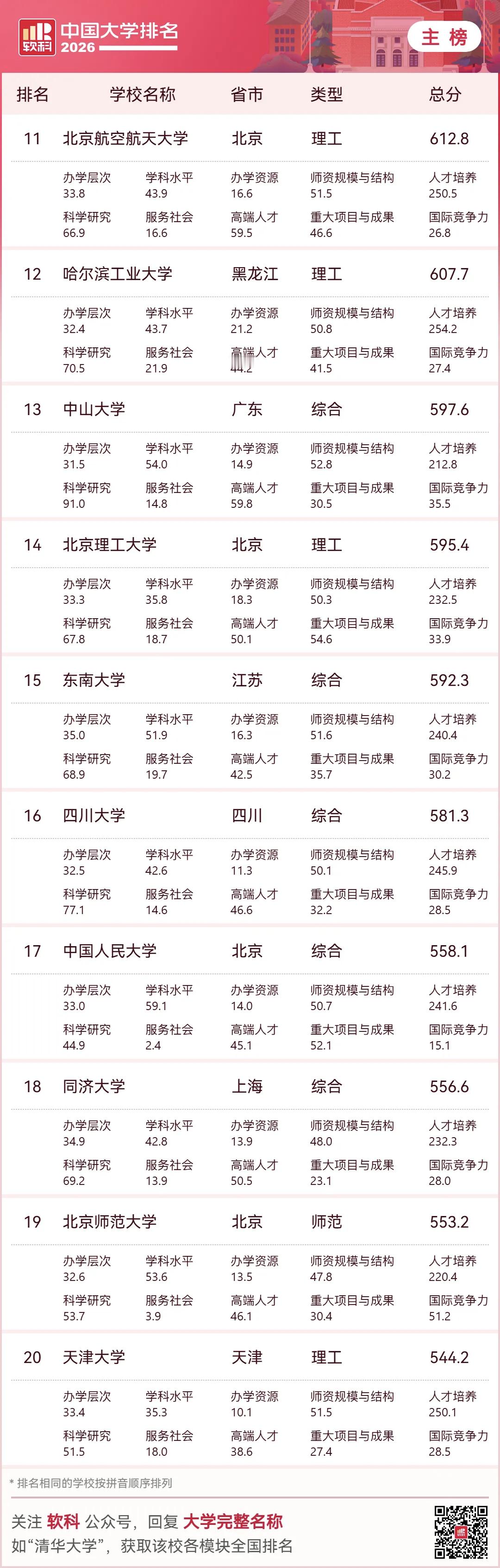 2026中国大学排名科软新出的2026国内大学排名,看看有没有自己的母校。不知道